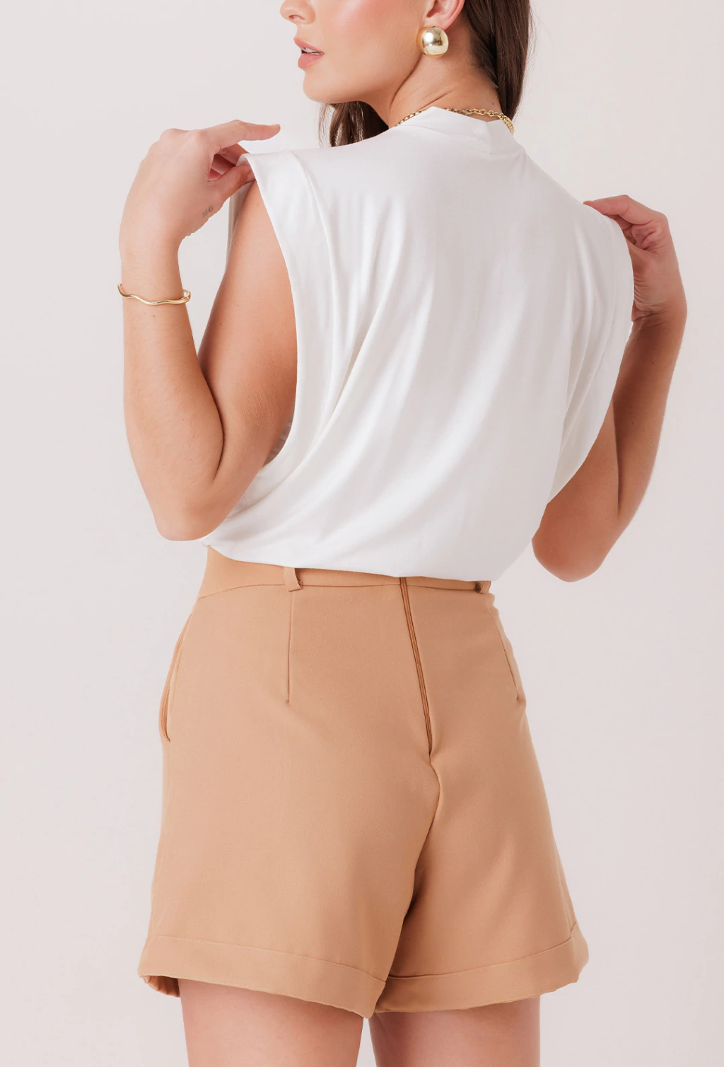 Confeccionada em uma alfaiataria estruturada de alta qualidade, bermuda Elvira é uma peça versátil e elegante que combina estilo e conforto de forma impecável. Feita com tecido premium, sua textura é suave e luxuosa, garan-tindo uma sensação de sofisticação em cada uso. Na parte da frente, a ber-muda apresenta pregas cuidadosamente elaboradas, que adicionam uma dimensão extra ao seu design. Possui barra dobrada, que confere um toque de estilo e modernidade, além de adicionar um elemento de interesse visual, enquanto mantém a elegância atemporal da peça. O corte da bermuda é projetado para oferecer um ajuste confortável e elegante, abraçando as cur-vas naturais do corpo de forma graciosa. Além disso, a qualidade da alfaiata-ria é evidente nos detalhes, desde as costuras bem acabadas até os acaba-mentos cuidadosamente executados. Cada aspecto desta bermuda foi meti-culosamente planejado para garantir um padrão de excelência que perdura ao longo do tempo.