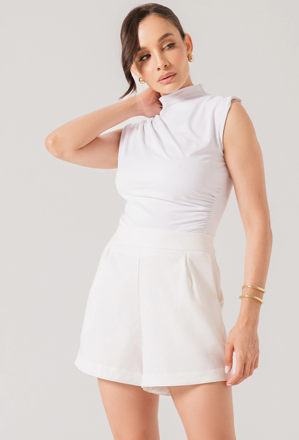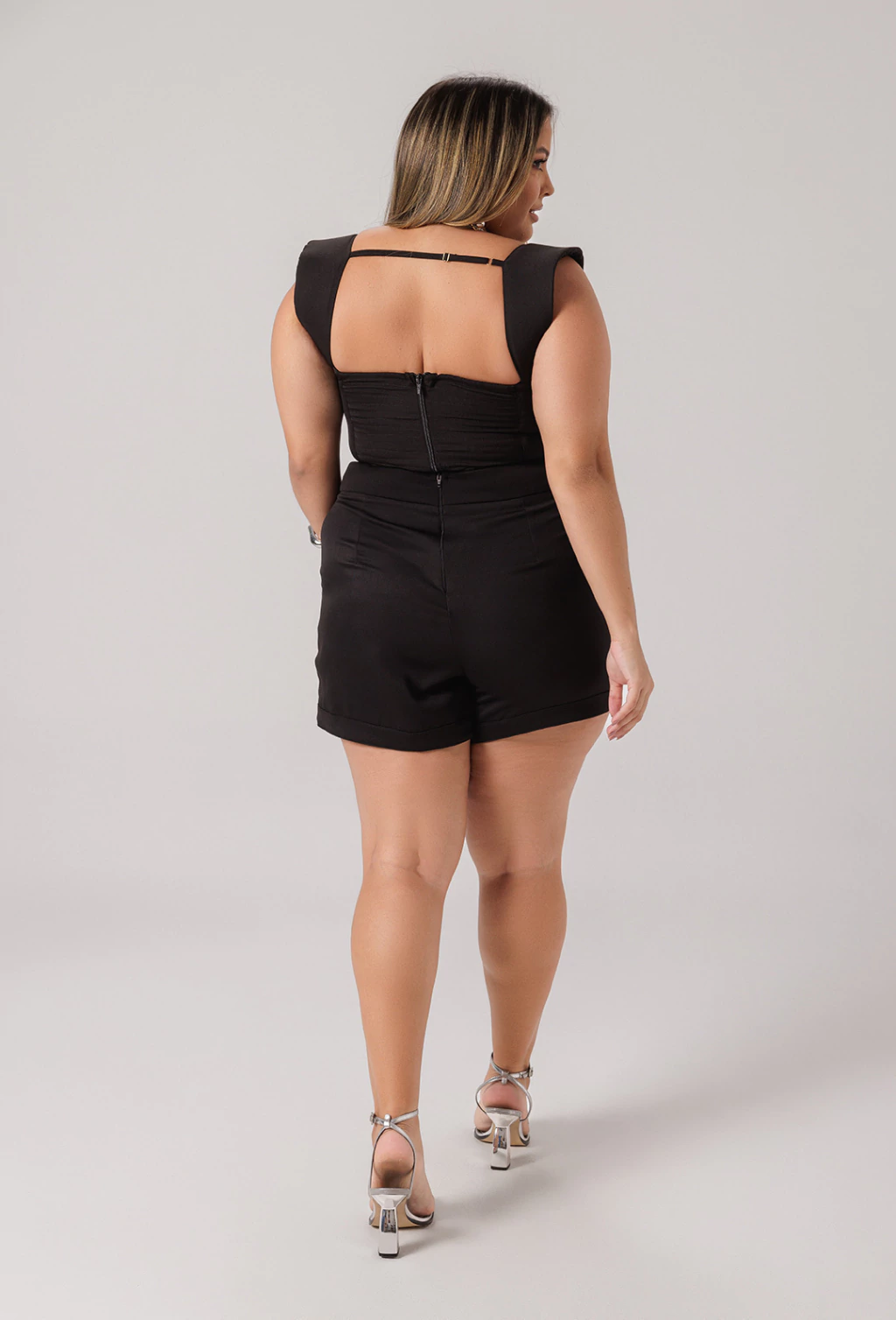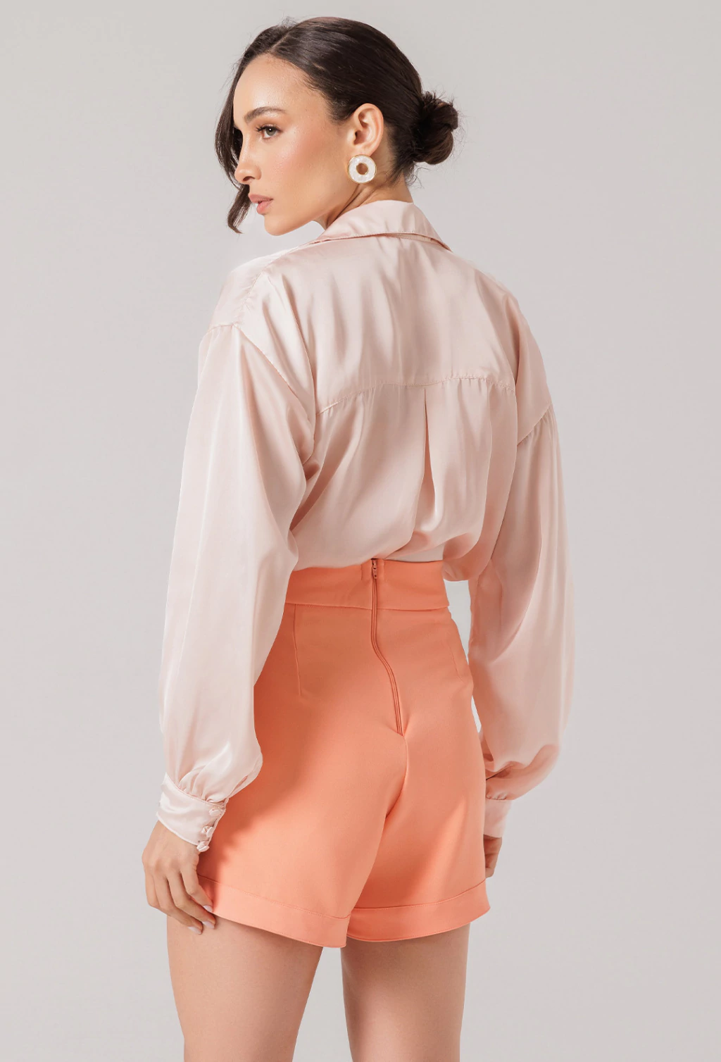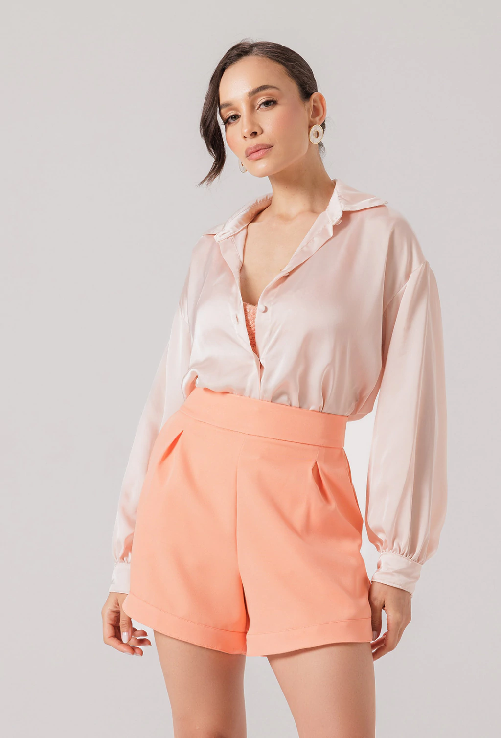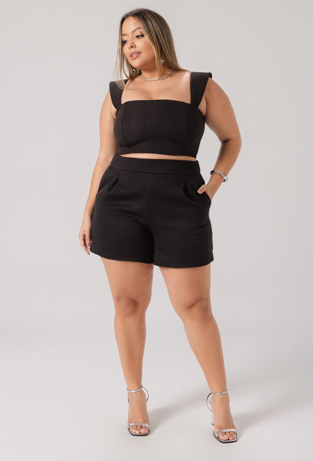 Confeccionado em alfaiataria de alta gramatura é um modelo atemporal e super elegante, que serve para elevar qualquer look. Com um comprimento no meio da coxa, ela possui detalhes em pregas, bolso faixa e barra larga em dobrão rebatido. Seu fechamento se dá por um zíper com colchete invisível no centro das costas.