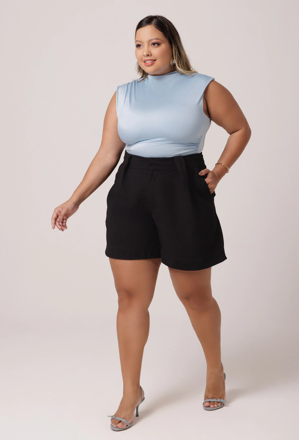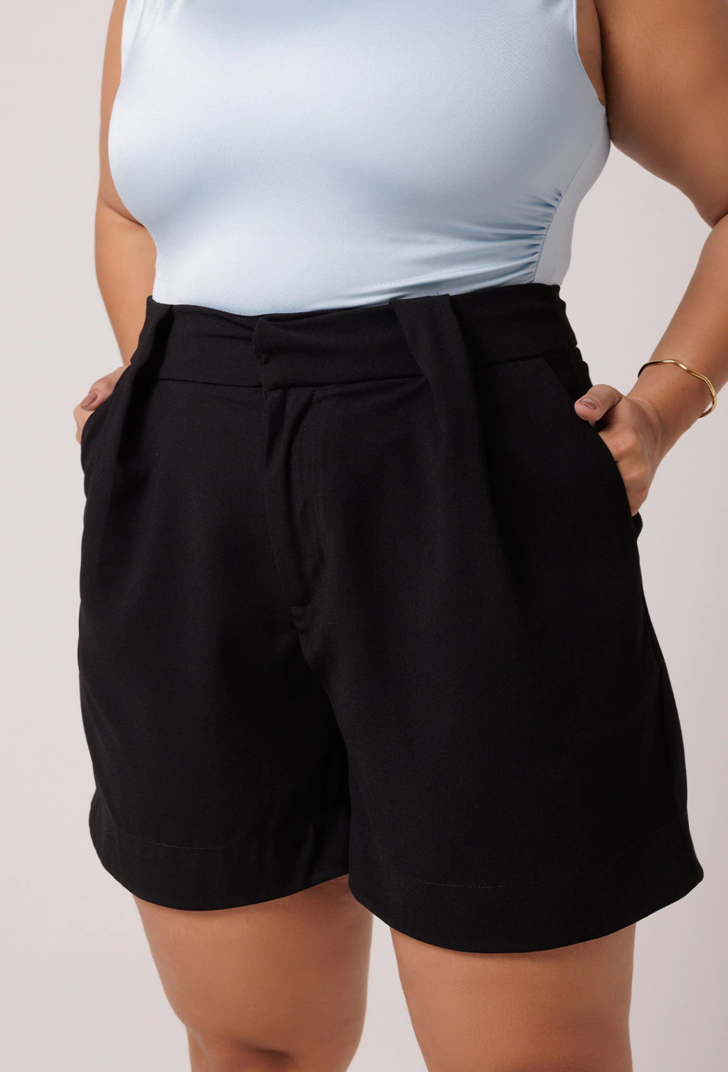 Características: Bermuda em crepe com pregas na frente
