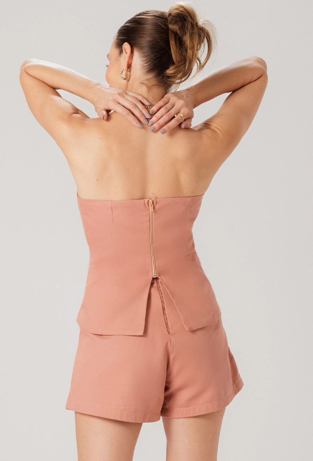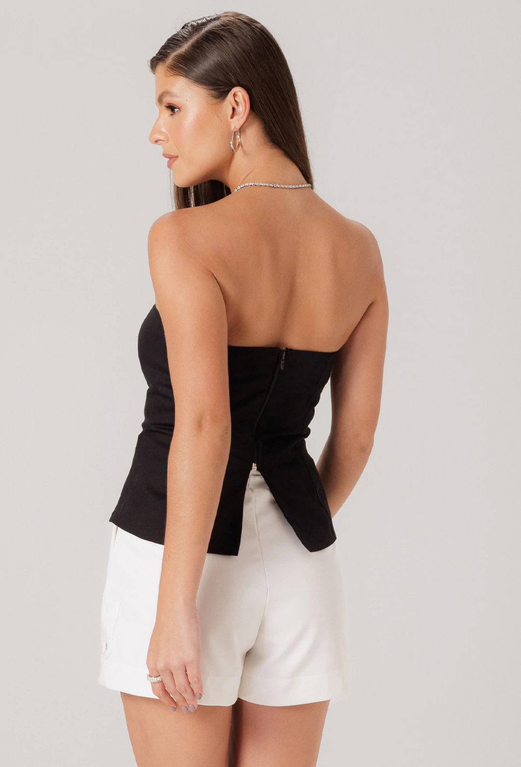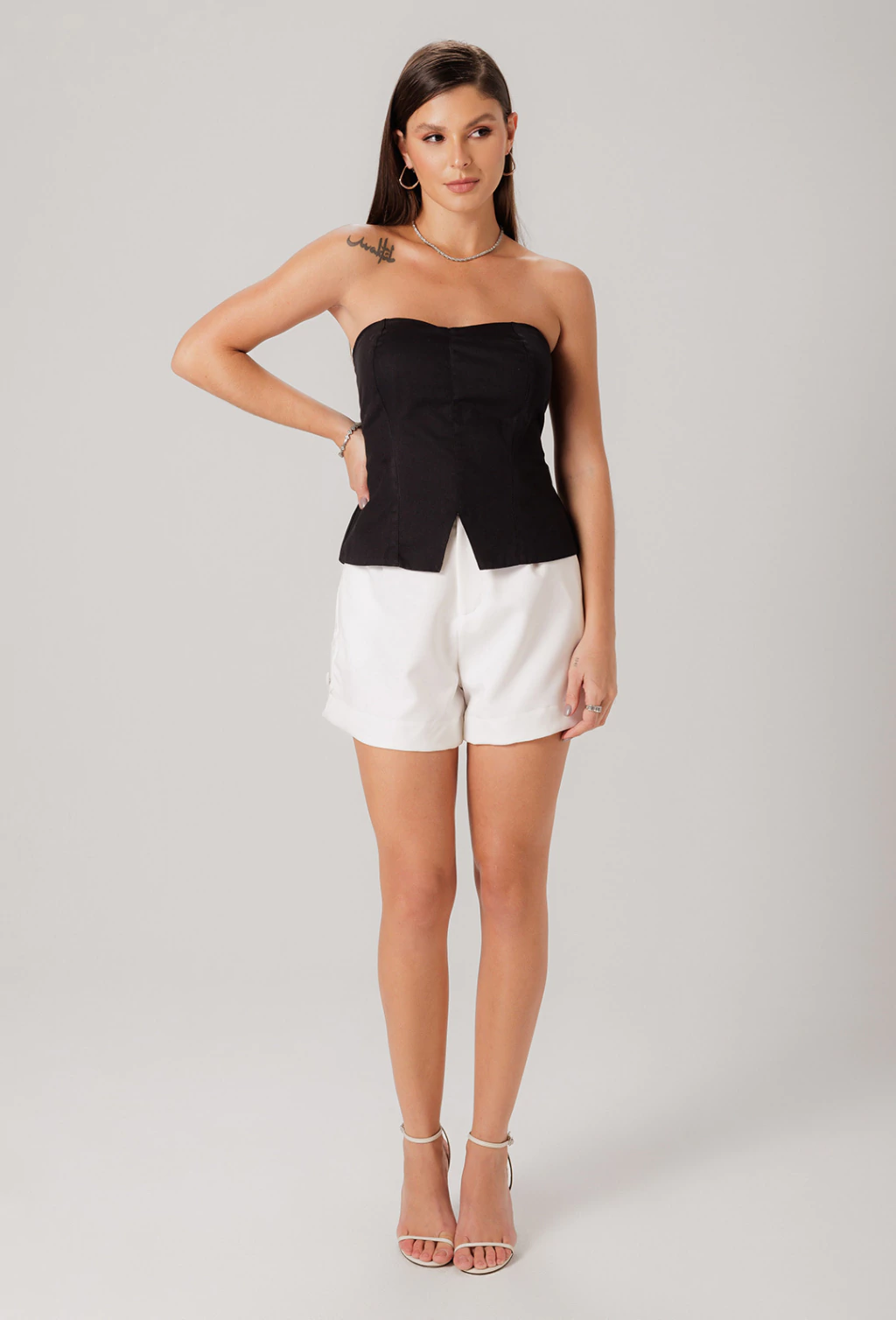 Confeccionado em alfaiataria de alta gramatura, a Blusa Nícia possui decote de coração tomara que caia com recortes estratégicos que valorizam as formas do corpo e adicionam um charme moderno para a peça, ideal para quem deseja se destacar com confiança e sofisticação. A fenda central cria um detalhe interessante para a composição dos looks e dão a peça um ar descolado que a tornam uma peça interessantíssima.