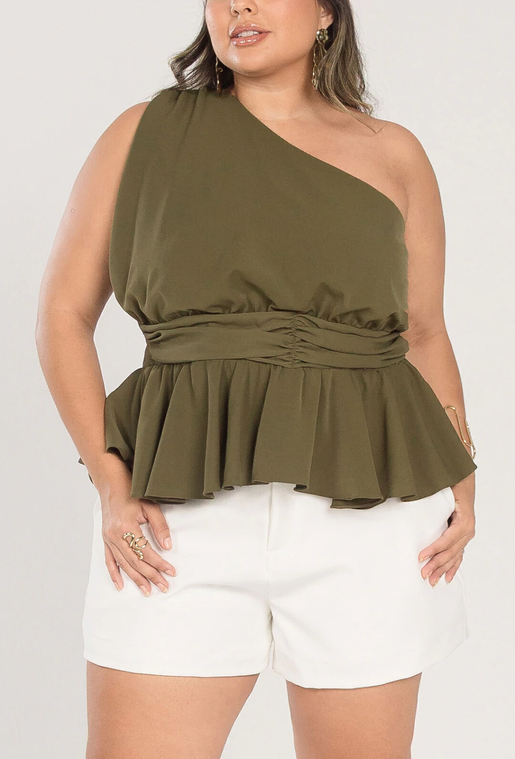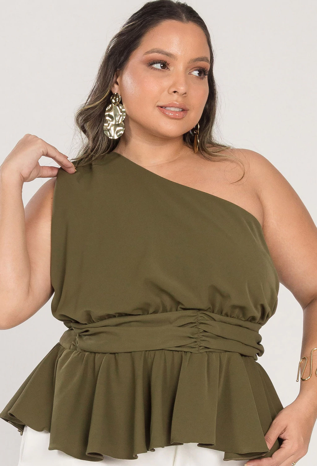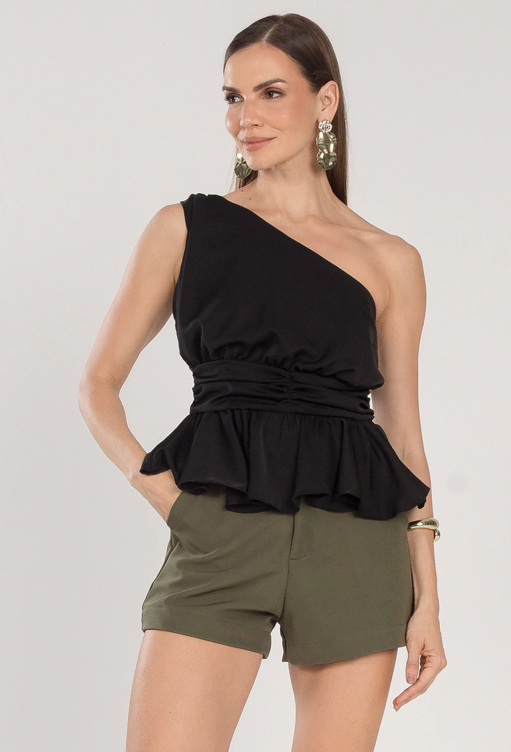 CARACTERISTICAS: Blusa assimétrica com peplum