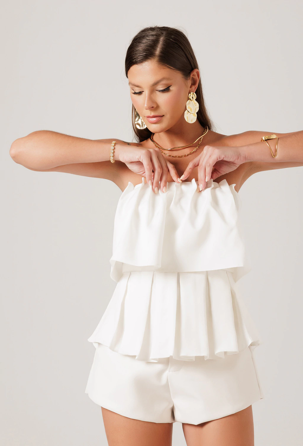 Confeccionada em alfaiataria de alta gramatura a blusa Thalassa é uma peça com design diferenciado. Sua estrutura com drapeados por todo o corpo trazem uma sensação de textura ao look. Com modelagem tomara que caia ela valoriza o busto. Seu fechamento é em zíper destacável facilitando vestibilidade. Esta peça é um verdadeiro acontecimento. Seu design diferenciado fazem qualquer look se tornar elegante e sofisticado.