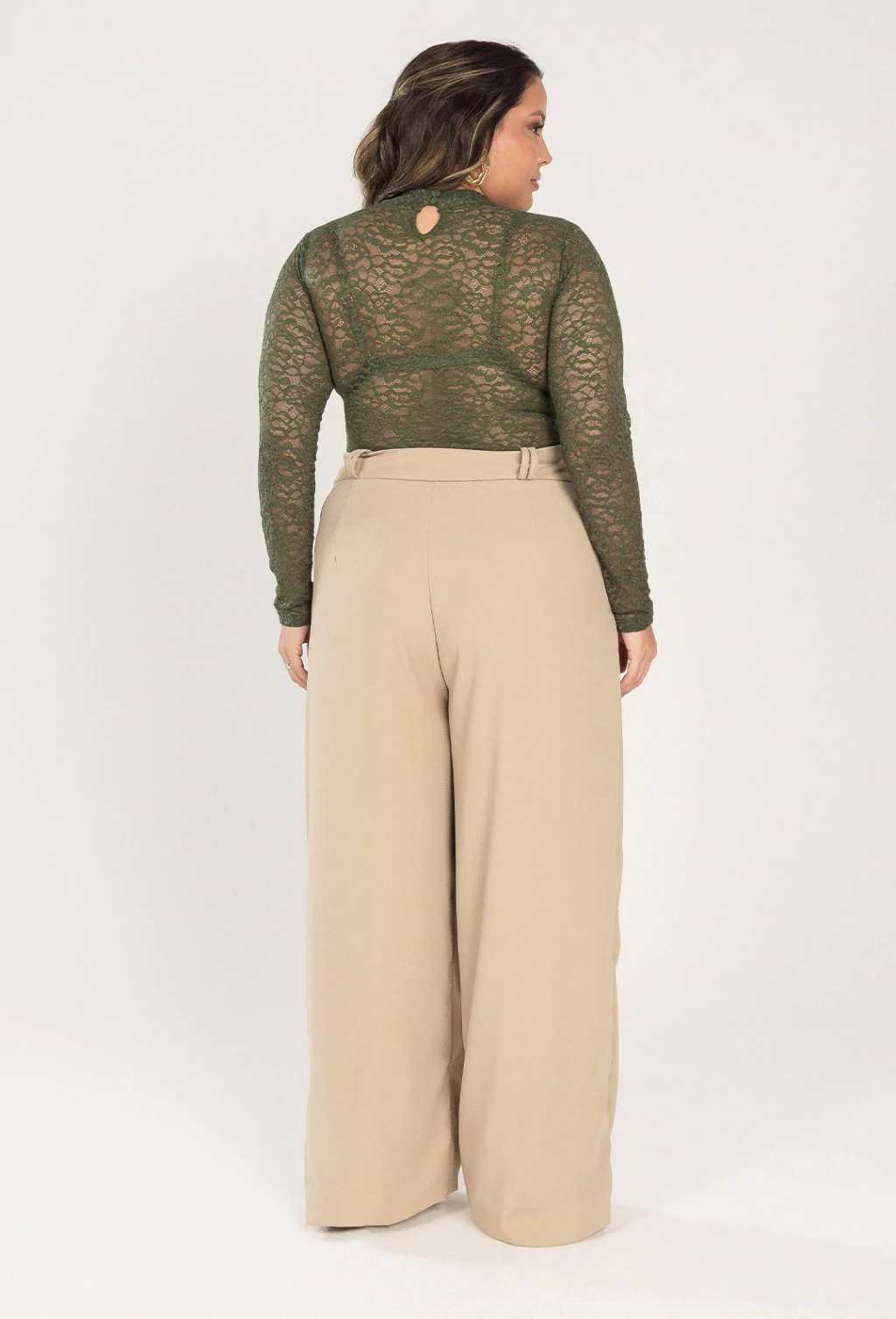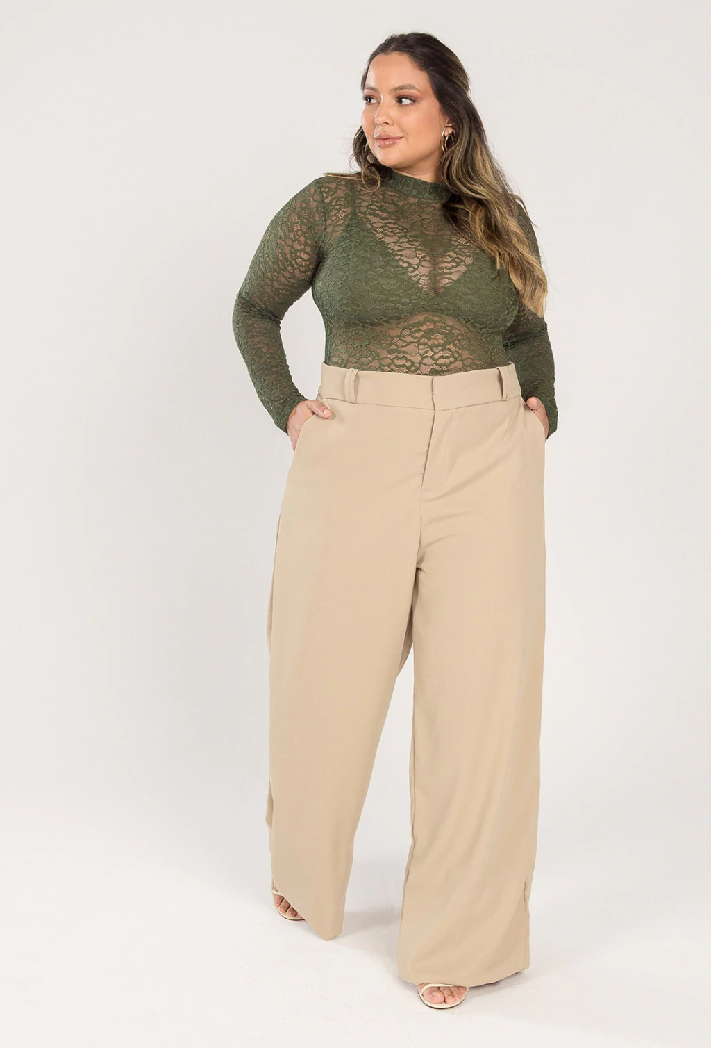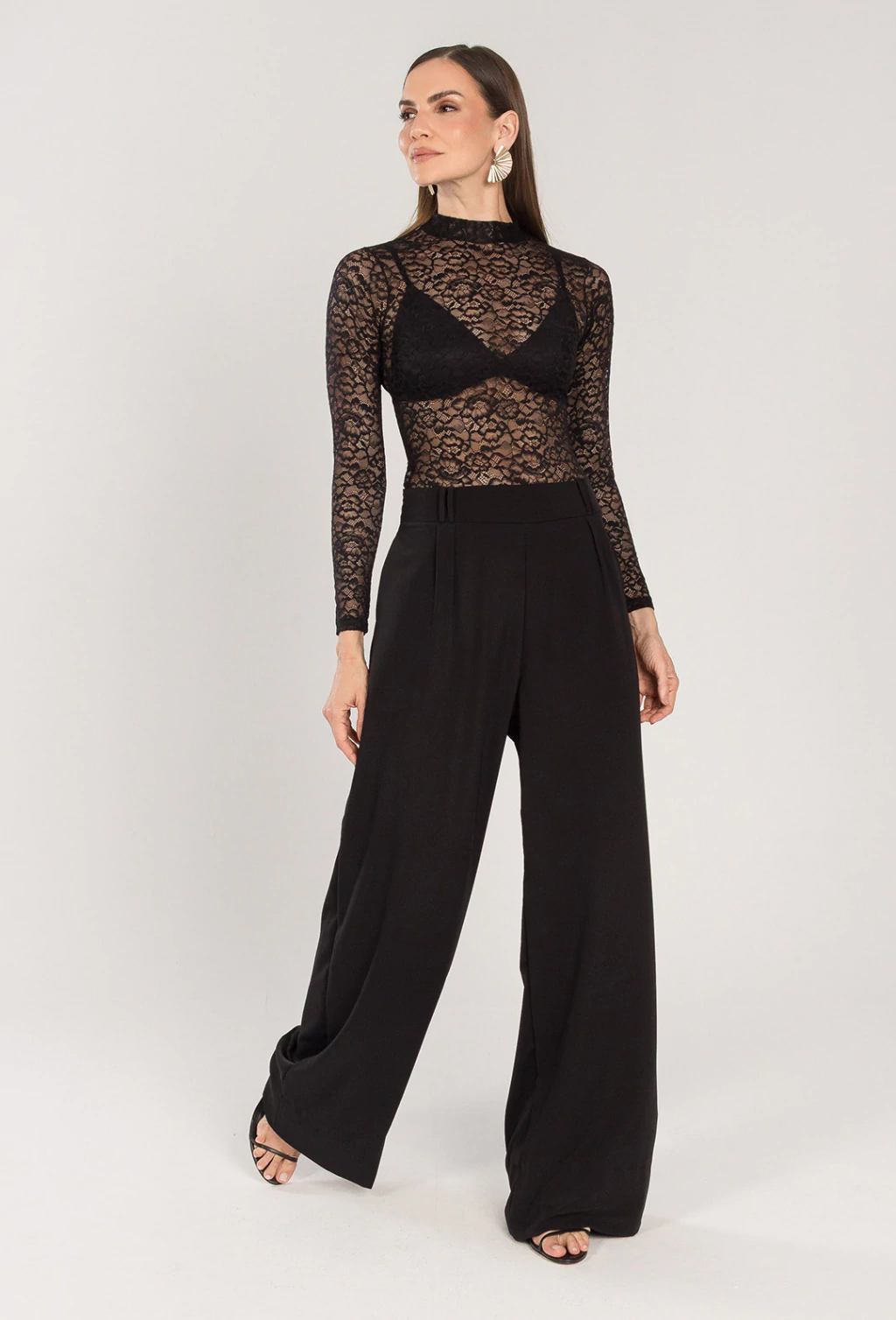 Confeccionado inteiramente em renda delicada, o body Geisy possui transparência sutil que traz sensualidade e elegância na medida certa. A peça possui gola alta, que confere um ar refinado e alonga a silhueta, além de mangas longas, que equilibram a proposta ousada da renda com um toque de sofisticação. A modelagem ajustada ao corpo valoriza as curvas com conforto, enquanto o acabamento em renda realça os detalhes florais e o trabalho minucioso do tecido. Possui fechamento inferior com botão de pressão para maior praticidade no uso. Ideal para composições noturnas, produções fashionistas ou como peçachave em sobreposições com blazers, tops ou peças em alfaiataria.