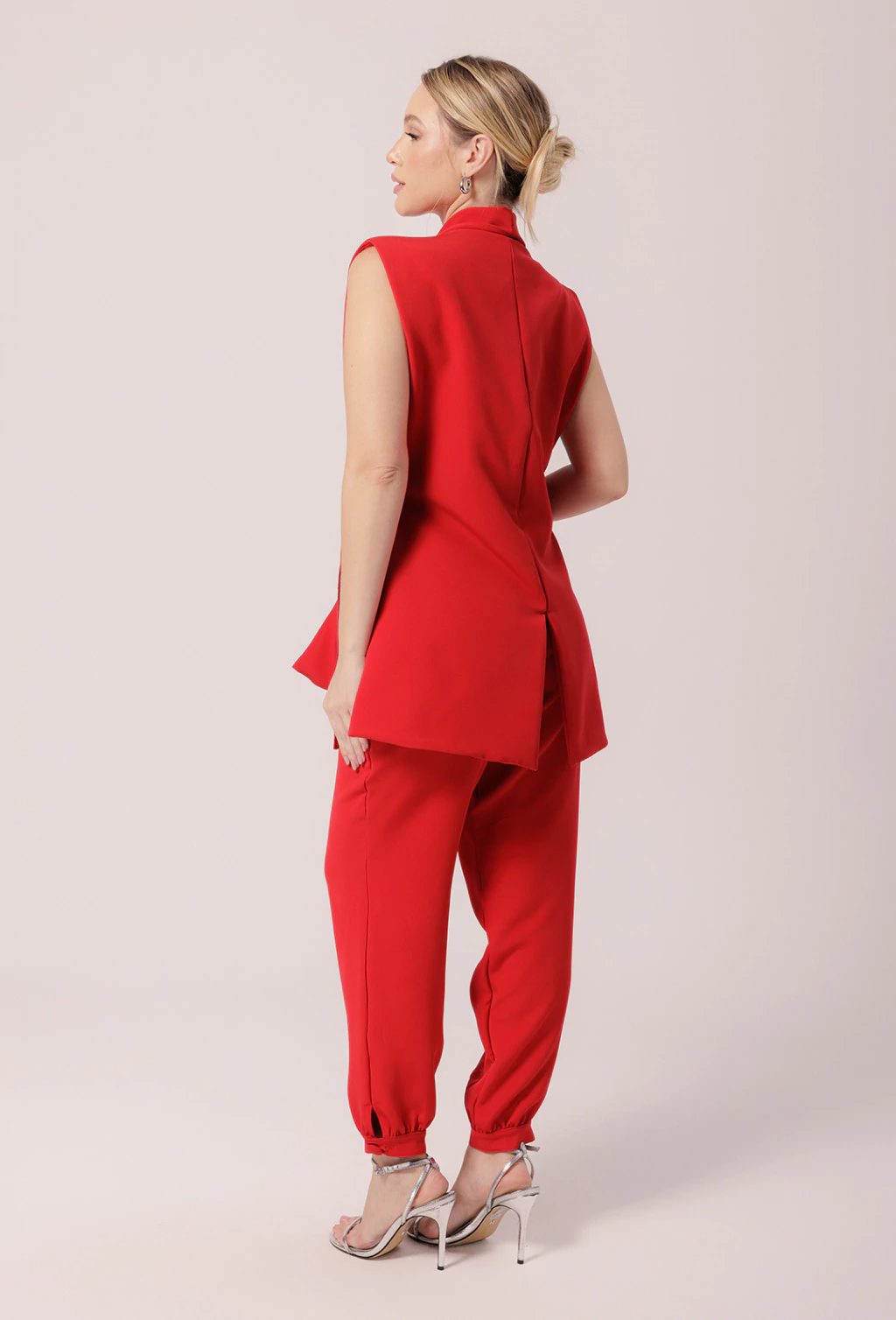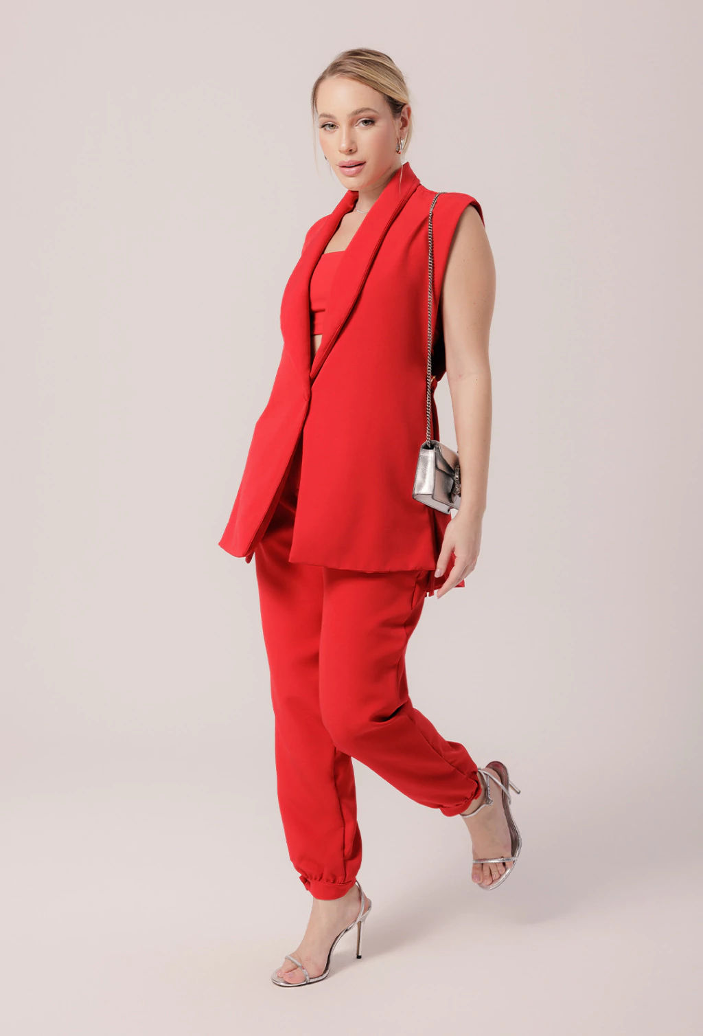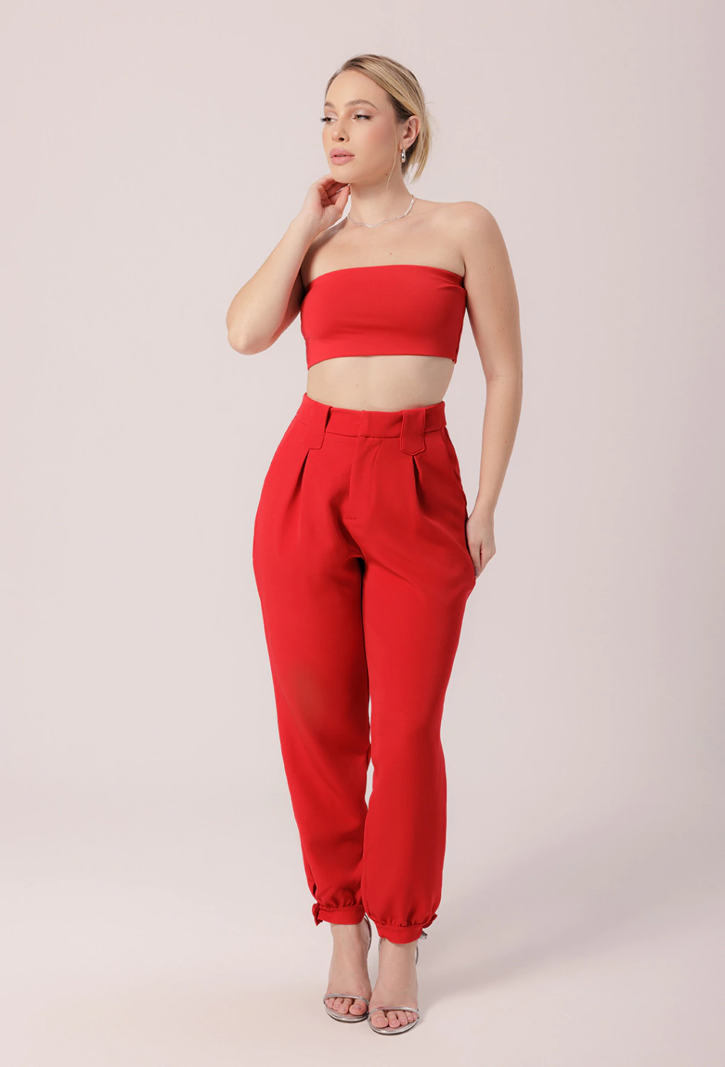 Confeccionado em alfaiataria de alta gramatura, a calça Glenda é uma peça sofisticada e versátil, possui modelagem estilo cenoura que valoriza bem o quadril e seu cós possui passantes largos que dão um charme especial à peça, com braguilha na frente e colchetes para fechamento. Possui barra franzida com fechamento por botão e bolsos traseiros perfeitos para o uso do dia a dia.