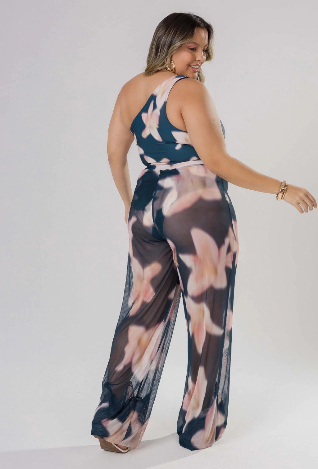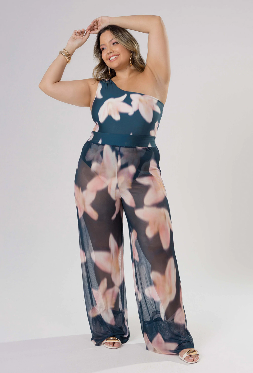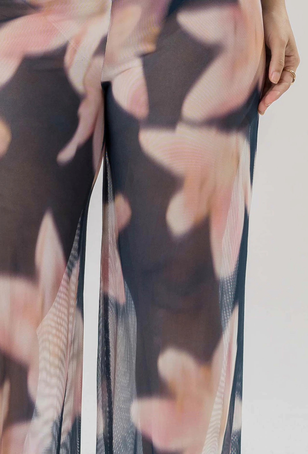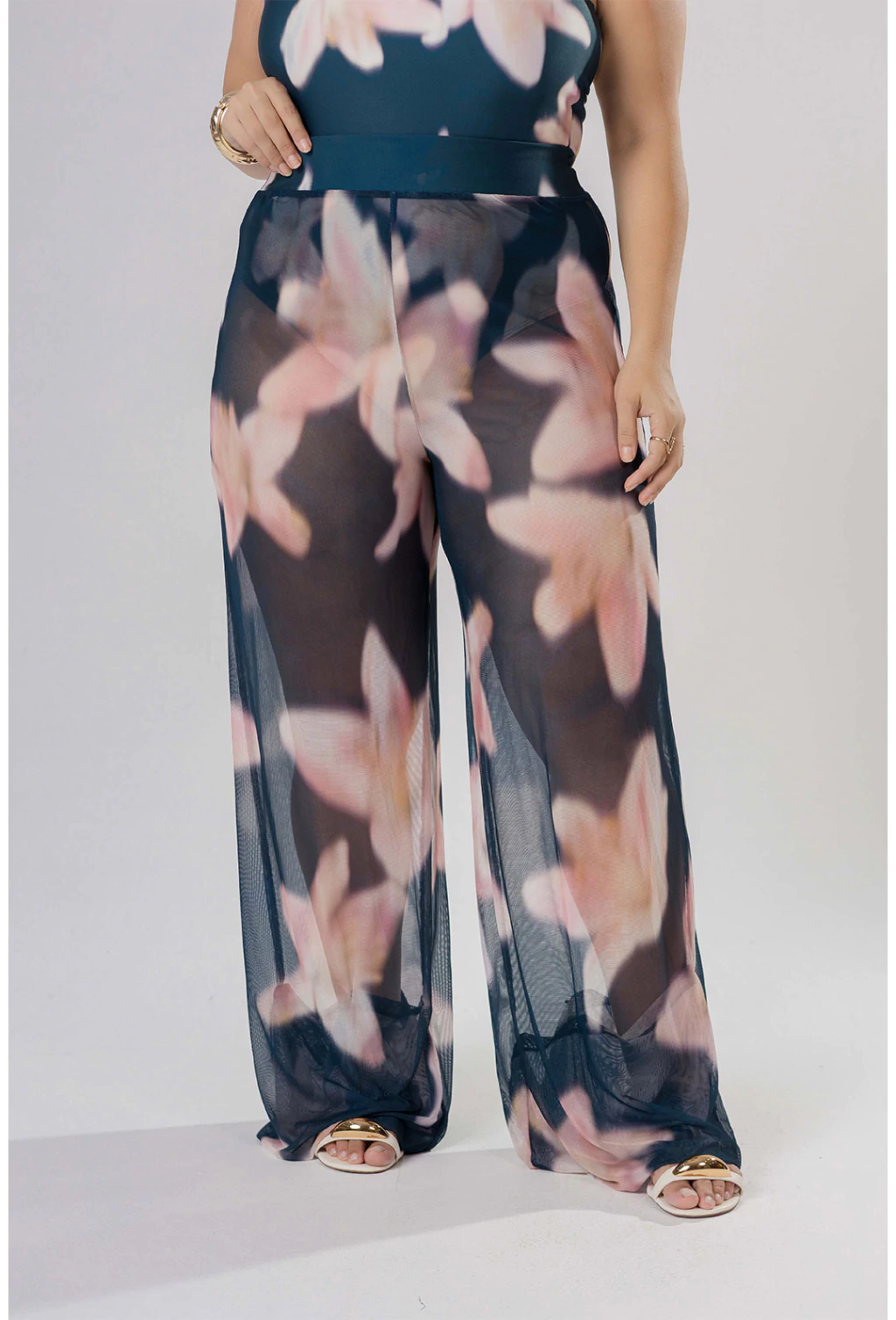 Confeccionado em Tule Estampado, a calça Mandy possui uma estampa maxi floral que oferece cores vibrantes, sendo uma expressão de criatividade e estilo individual. Ela é ideal para eventos informais e dias quentes.