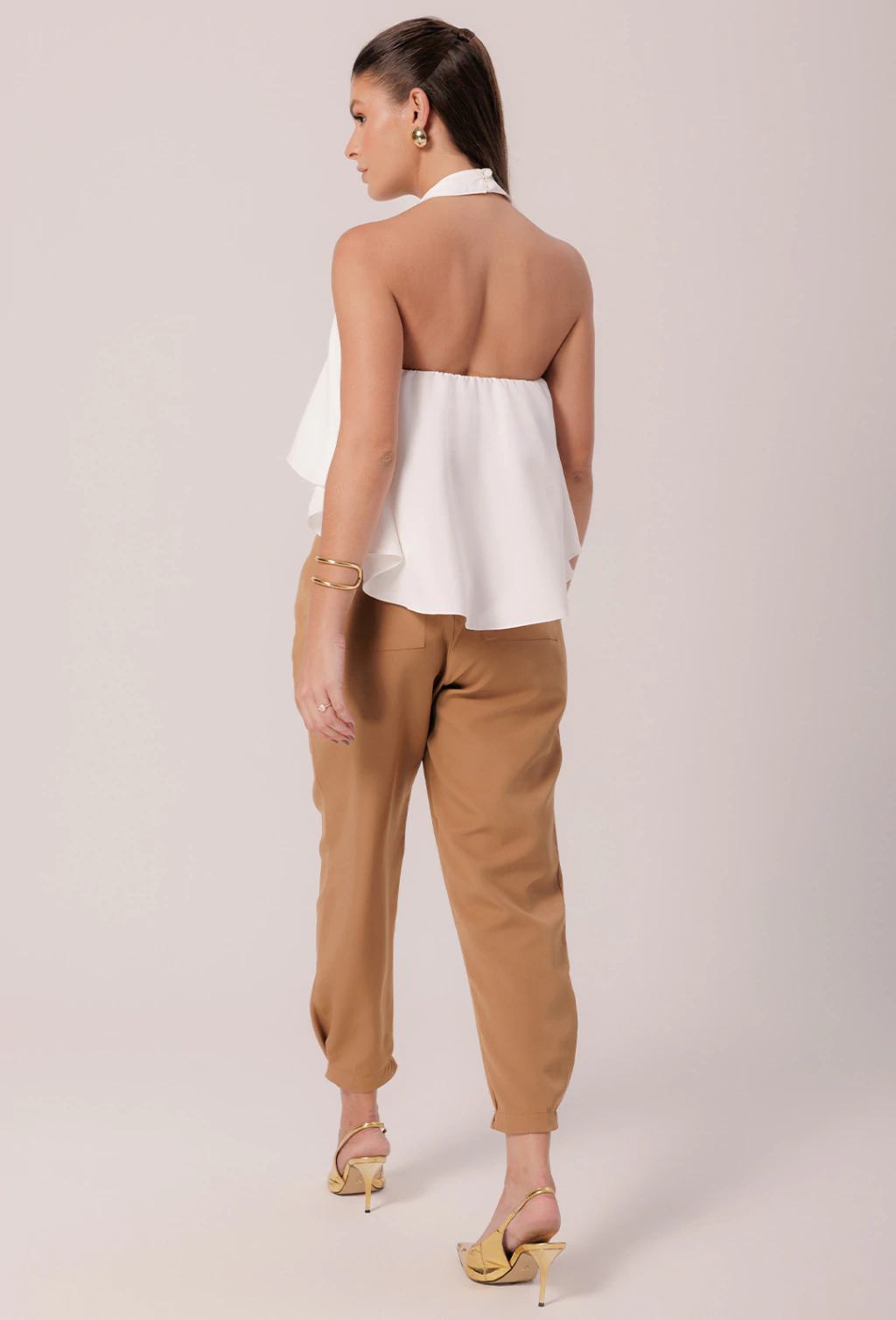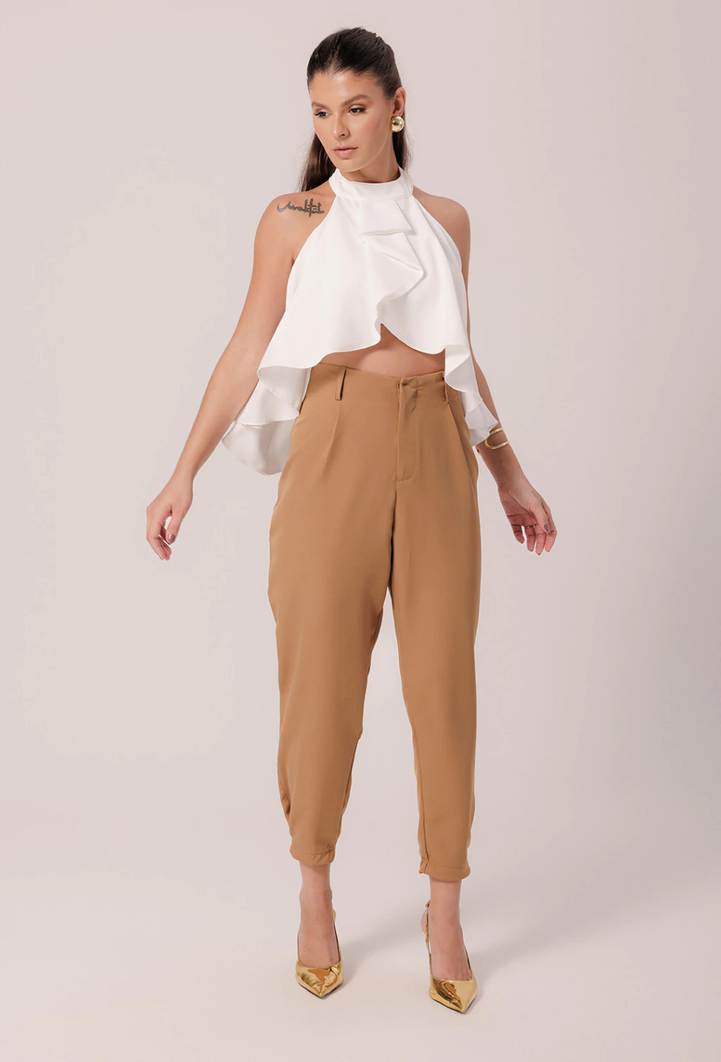 Confeccionado em alfaiataria de alta gramatura, a calça Michele eleva o estilo do seu dia a dia com sua proposta sofisticada e moderna. Sua modelagem cenoura, com cintura marcada e pregas no tornozelo, não apenas oferece elegância, mas também um conforto excepcional. Os bolsos traseiros funcionais, delicadamente sobrepostos na peça, combinam praticidade com estilo, enquanto os passantes adicionam um toque clássico. O fechamento embutido com colchete, botão e zíper na frente garante um ajuste perfeito e seguro. Garanta uma aparência impecável em todas as ocasiões com essa peça.
