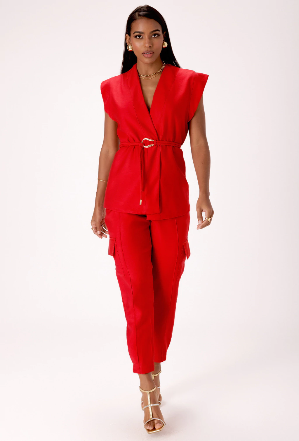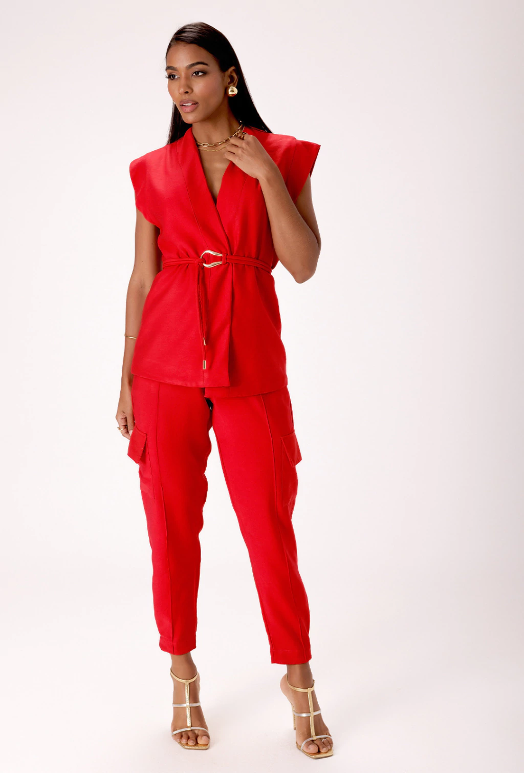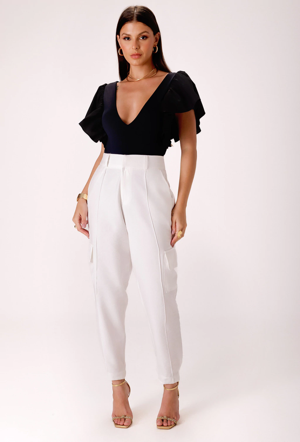 Confeccionada em alfaiataria de viscose, a Calça Suylane vem na modelagem cenoura que tanto amamos! Seu diferencial fica por conta das nervuras frontais que alongam a silhueta e dos maxi bolsos laterais que dão o toque moderninho. A barra é levemente ajustada ao tornozelo e traz pregas laterais para dar o formato cenoura. Seu fechamento se dá por zíper frontal e colchetes invisíveis. A calça traz ainda bolso faca lateral e passantes.