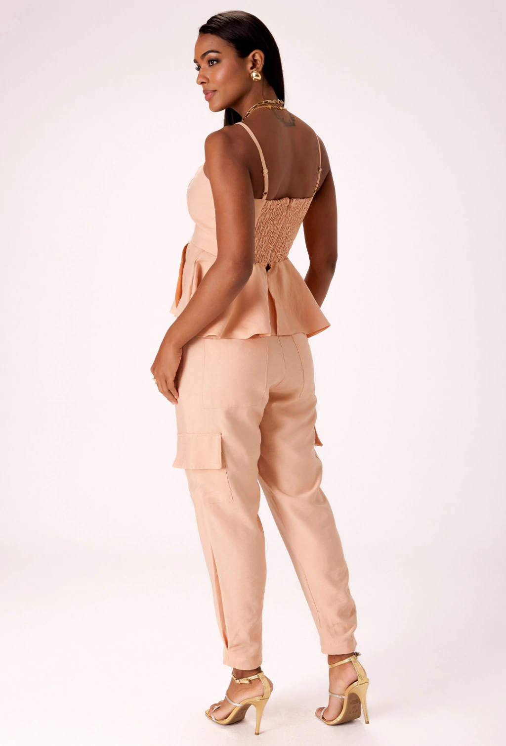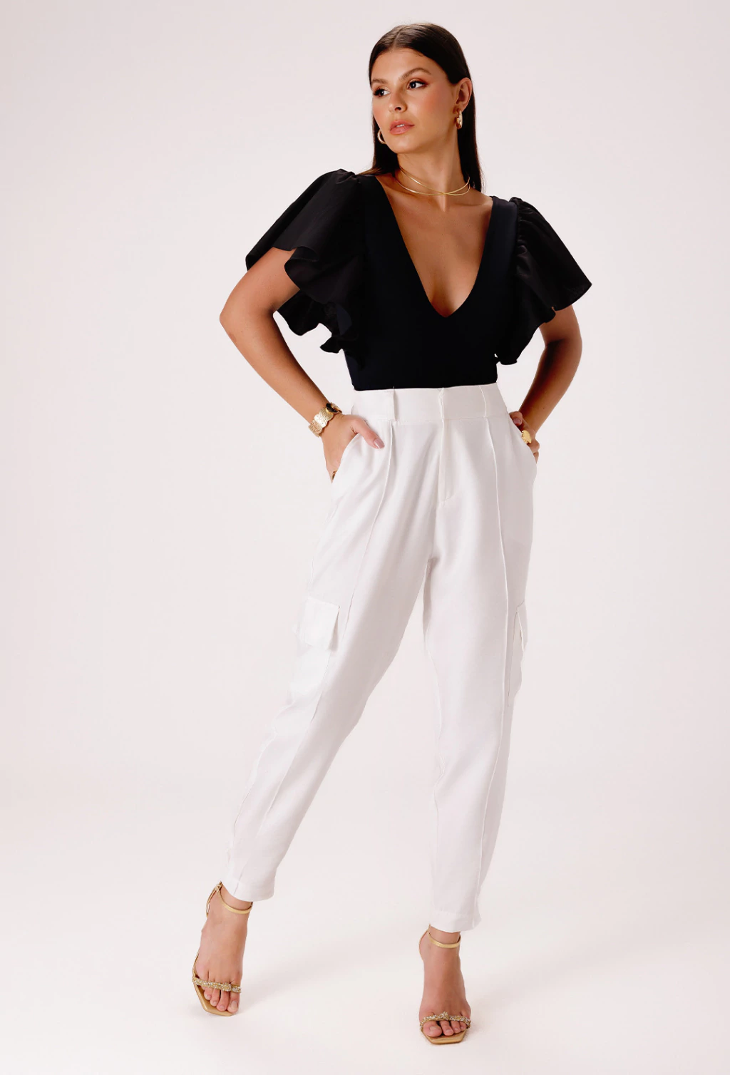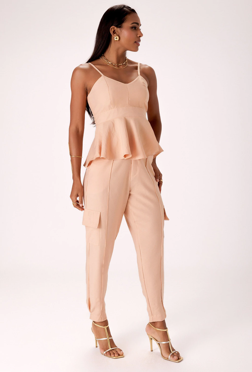 Confeccionada em alfaiataria de viscose, a Calça Suylane vem na modelagem cenoura que tanto amamos! Seu diferencial fica por conta das nervuras frontais que alongam a silhueta e dos maxi bolsos laterais que dão o toque moderninho. A barra é levemente ajustada ao tornozelo e traz pregas laterais para dar o formato cenoura. Seu fechamento se dá por zíper frontal e colchetes invisíveis. A calça traz ainda bolso faca lateral e passantes.