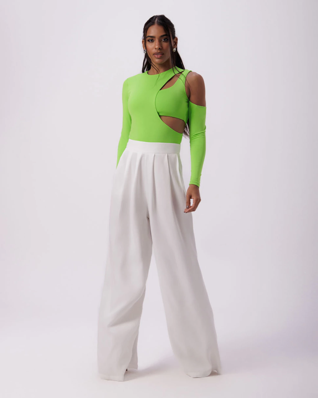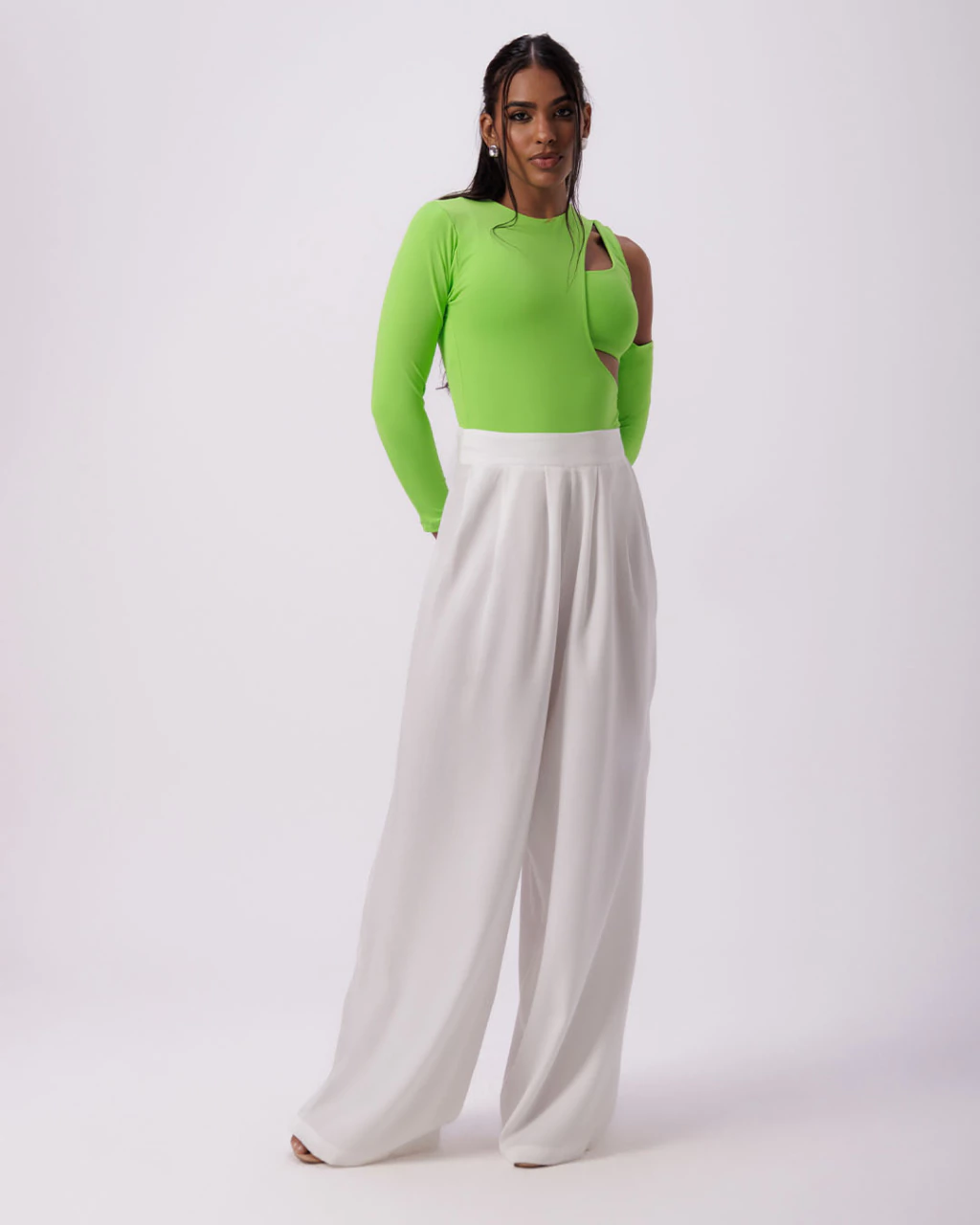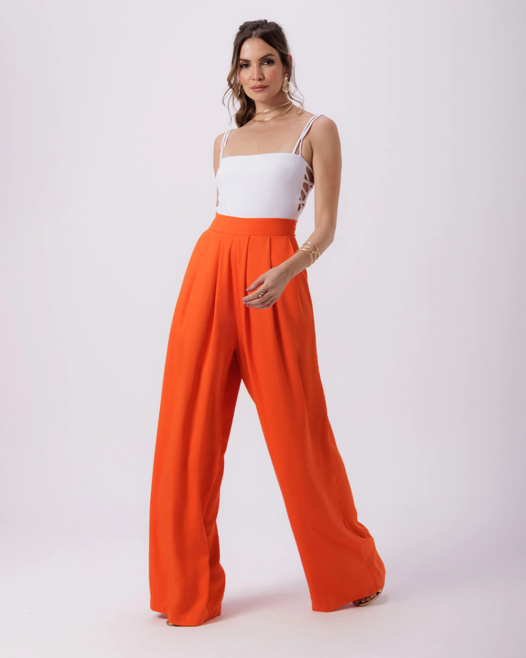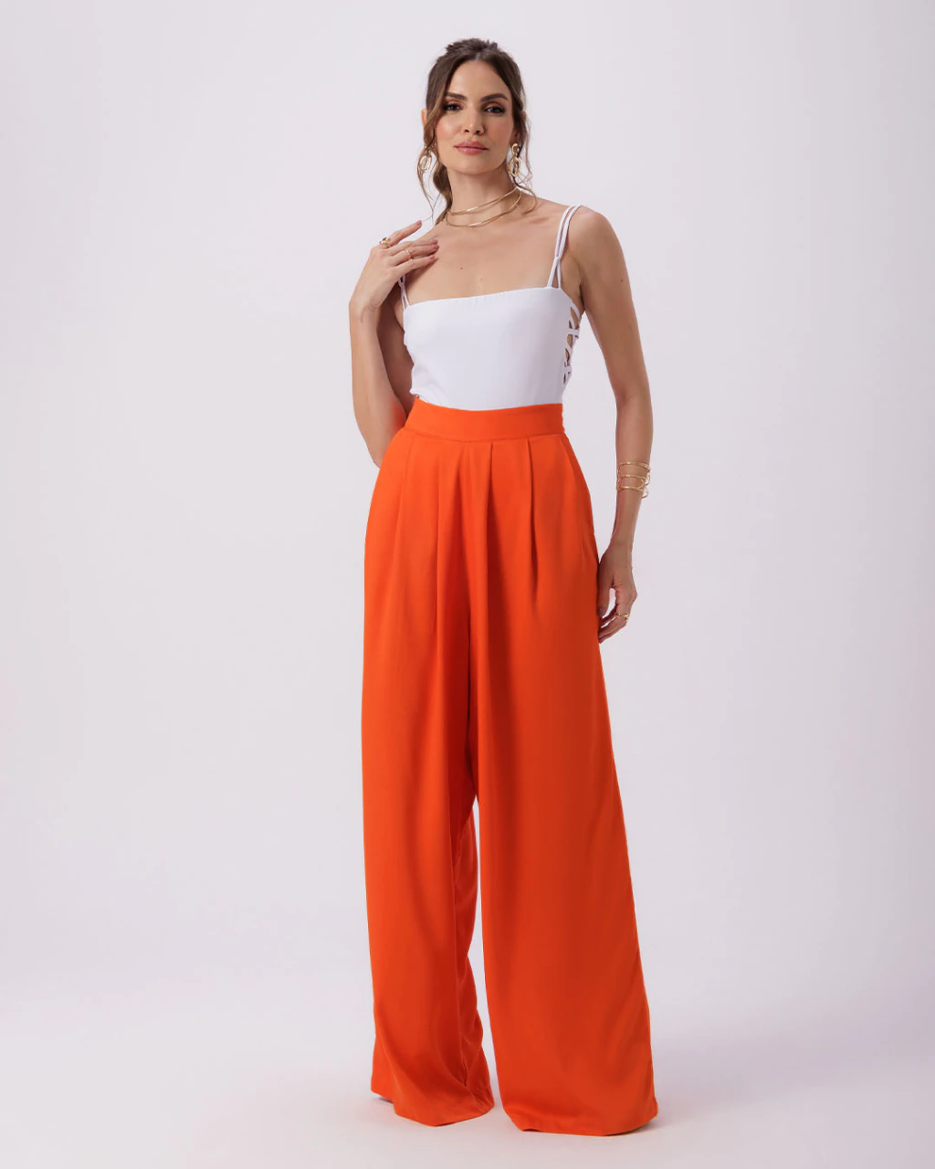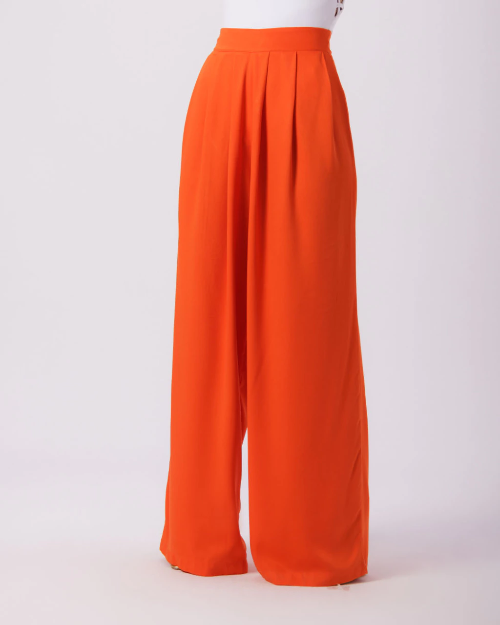 Confeccionada em Rayon Twill, a Calça Thamires é perfeita pra você que gosta de um conforto nada básico! Essa calça é super moderna e estilosa, pra você montar qualquer look pronta para qualquer ocasião. Com sua cintura altíssima, seis pregas soltas frontais, modelagem estilo pantalona, seu fechamento é em zíper e colchete nas costas e cós alto duplo. Além do tecido ser macio e se moldar ao corpo facilmente!