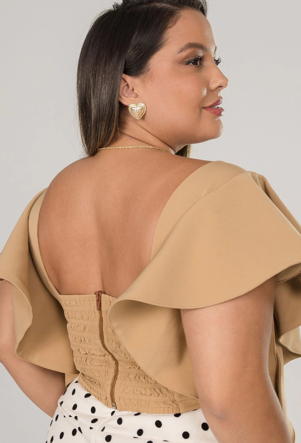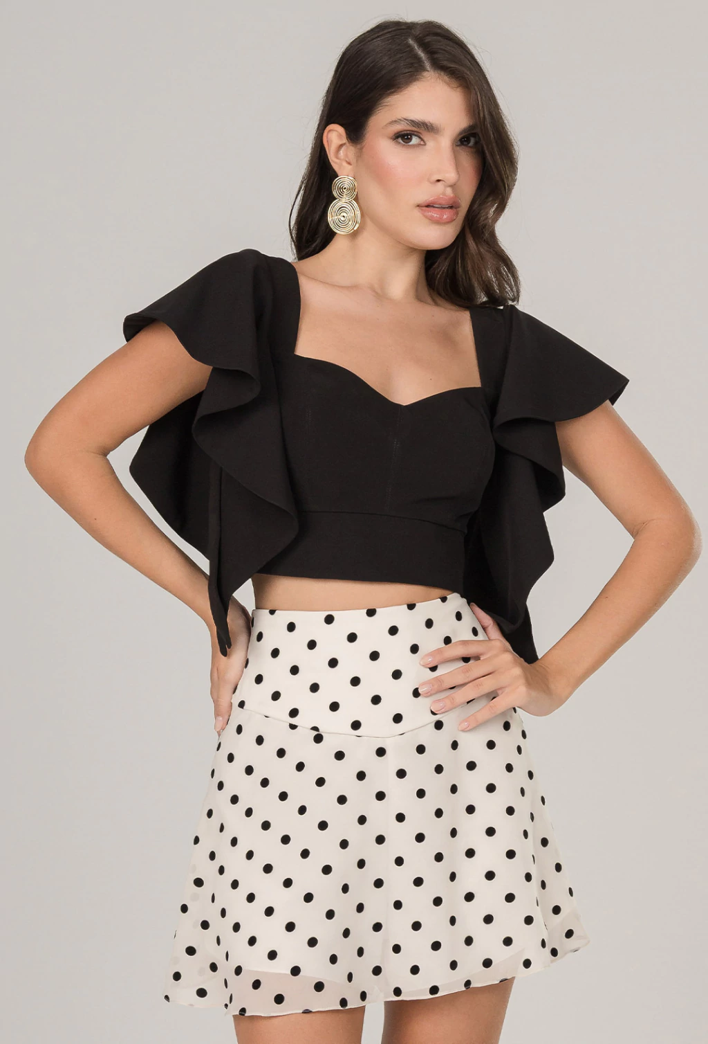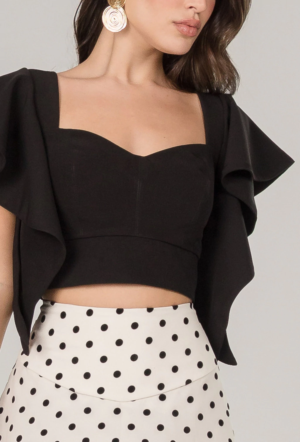 CARACTERISTICAS: Cropped com mangas godê em cascata