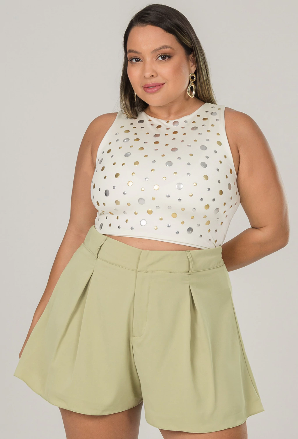 CARACTERISTICAS: Cropped com aplicação de chapinhas