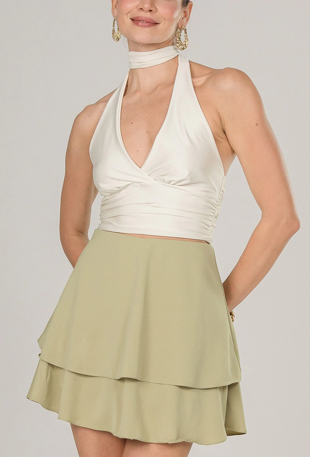 Cropped confeccionado em malha satinada, o cropped Inessa possui modelagem justinha ao corpo com drapeado nas laterais que deixa a peça com mais sofisticação. Seu decote é transpassado e valoriza muito o colo. A amarração no pescoço permite ajustar o decote sendo perfeita para vários corpos. Uma peça perfeita para várias ocasioões.