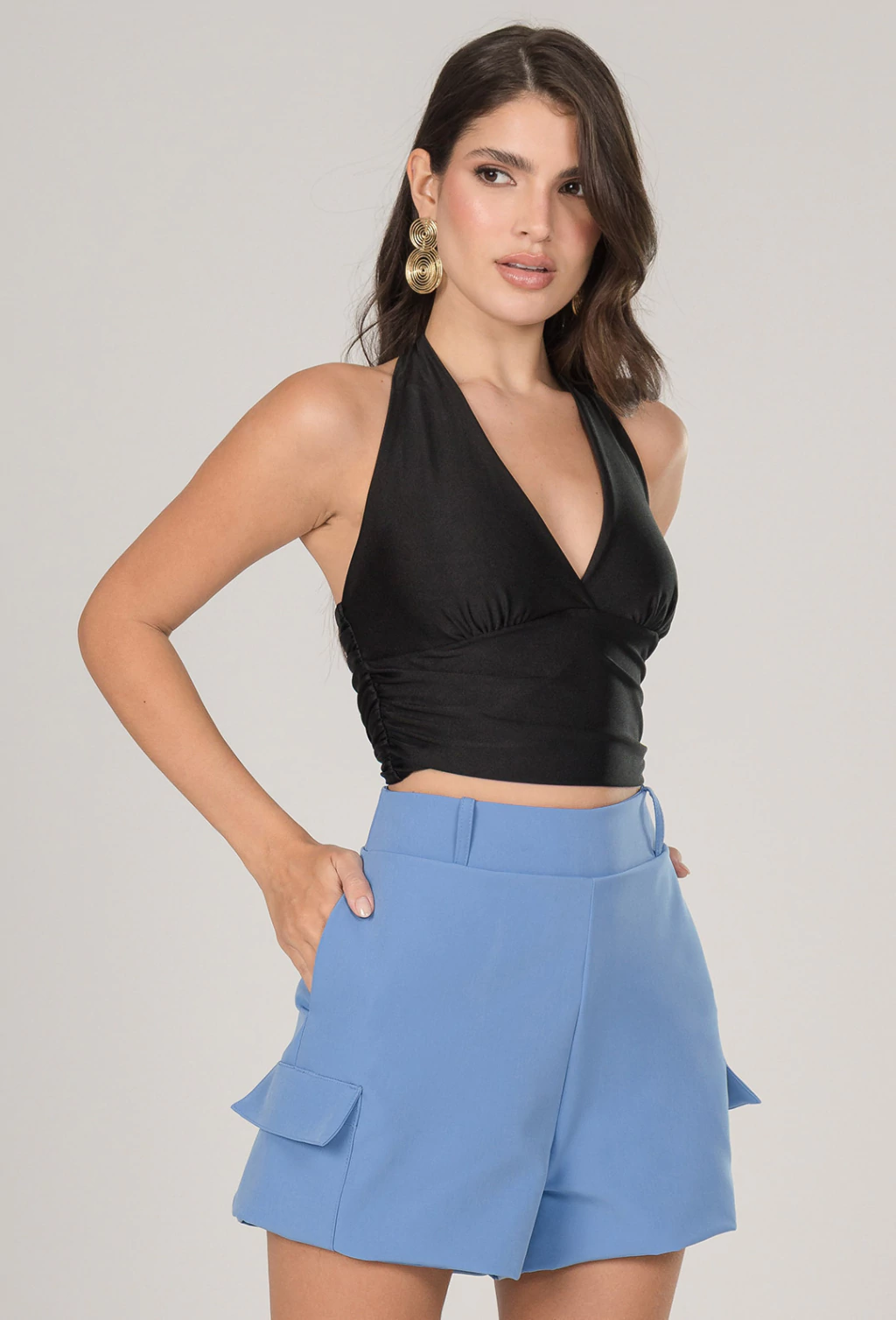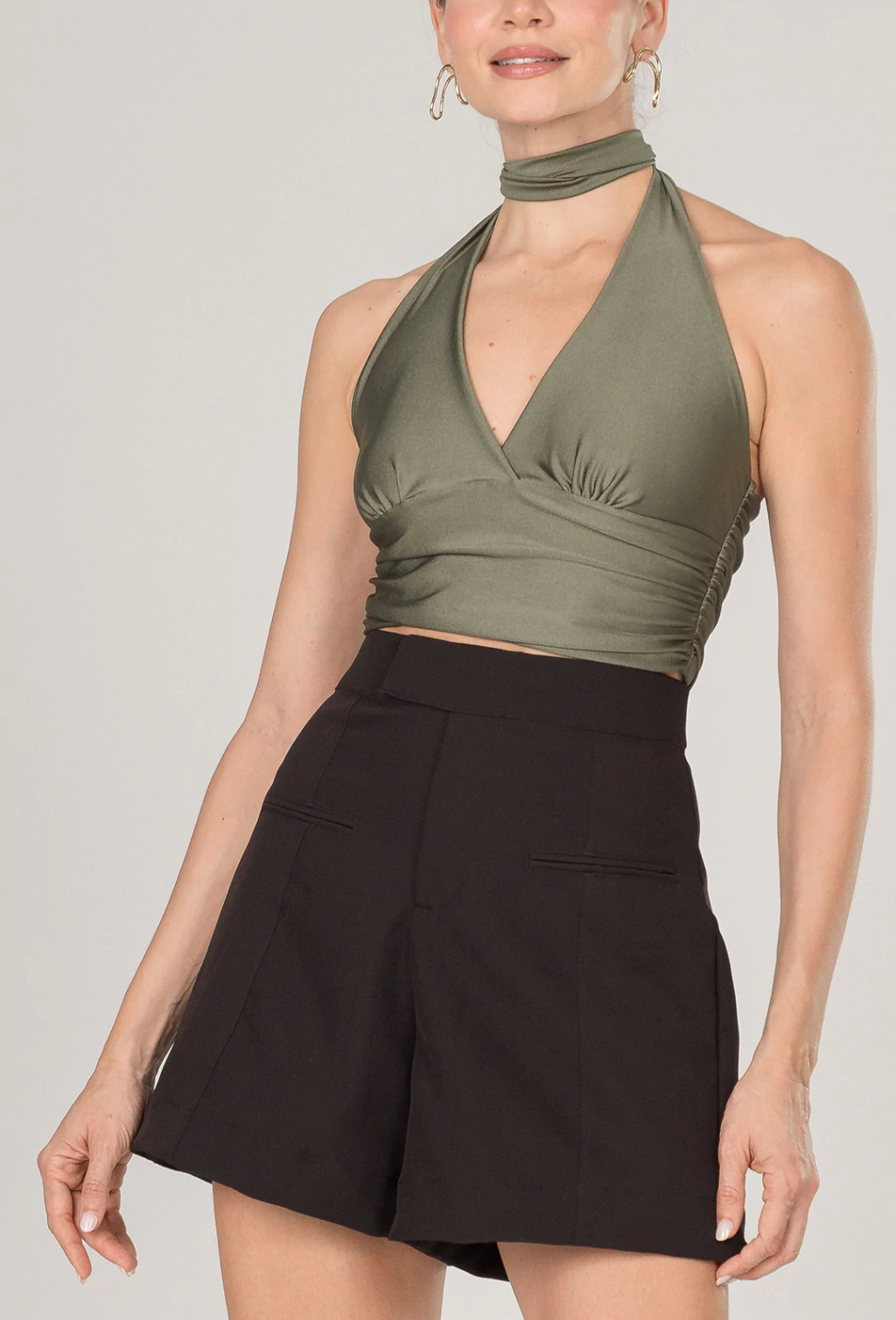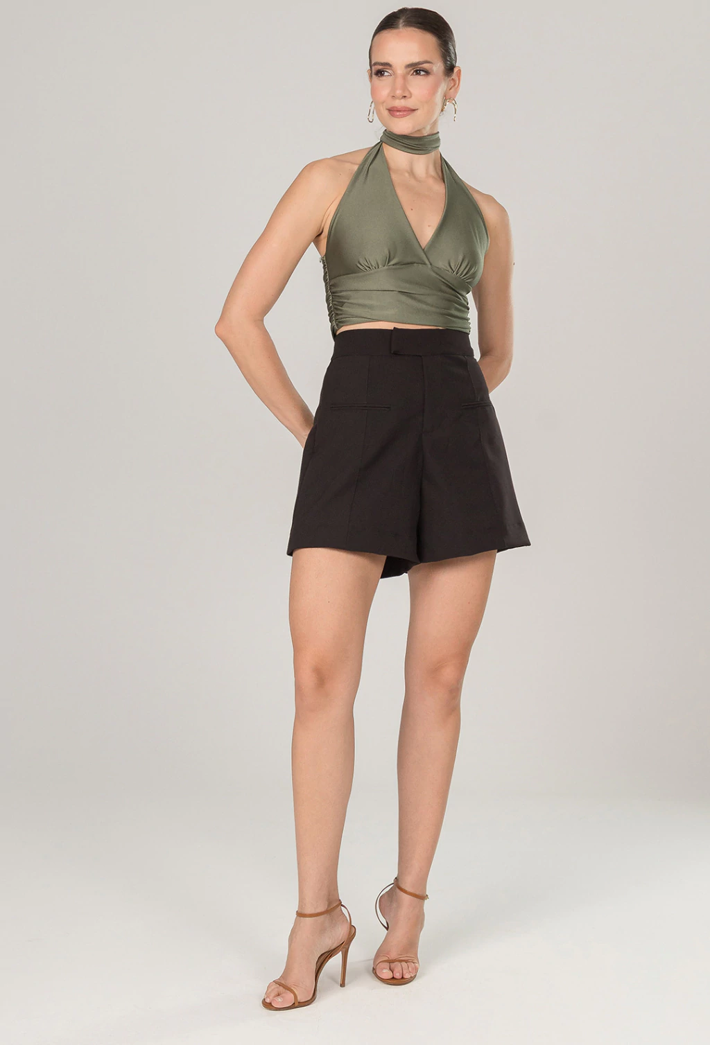 CARACTERISTICAS: Cropped frente única com drapeado nas laterais