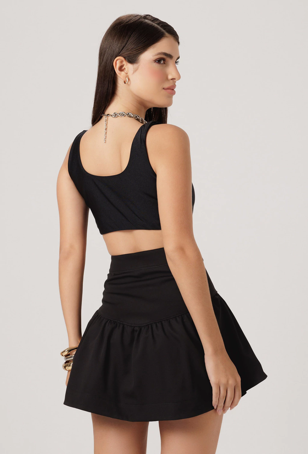 Cropped confeccionado em trilobal que é um tecido que se ajusta bem ao corpo. A fivela na parte do busto é um ponto forte na peça pois traz requinte e sofisticação. Uma peça ótima para compor looks mais descontraídos e frescos.