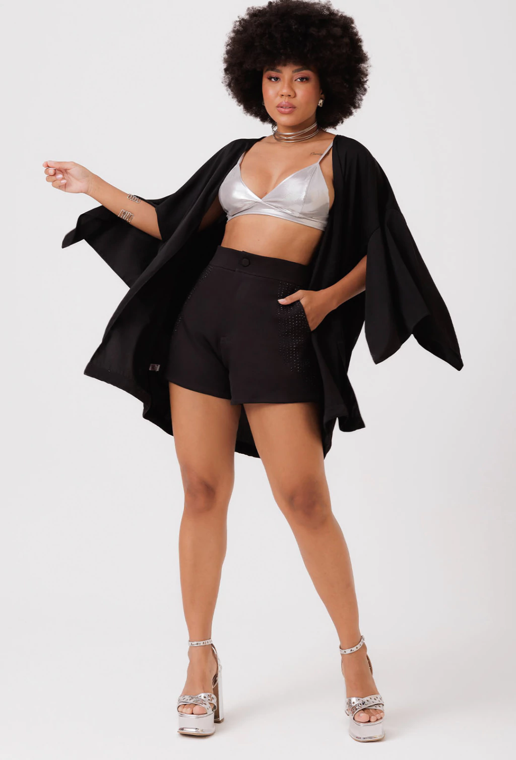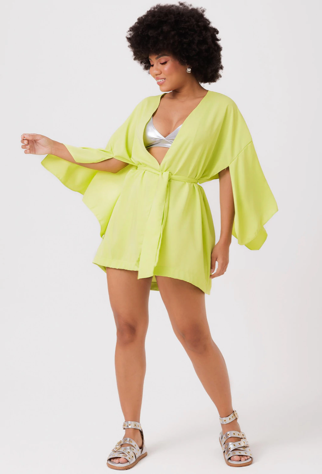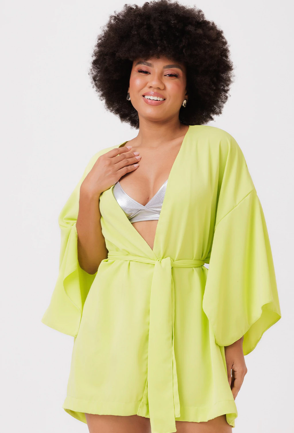 Confeccionado em Alfaiataria Leve, o Kimono Laura é uma peça coringa e elegante, para você conseguir compor como sobreposição em qualquer look, tudo isso sem perder o estilo! Sua modelagem meio oversized, possui um detalhe super legal nas mangas, que possui uma cava aberta, trazendo muito mais caimento e leveza a peça. Além disso, o kimono vem com uma faixa para você usar e abusar!
