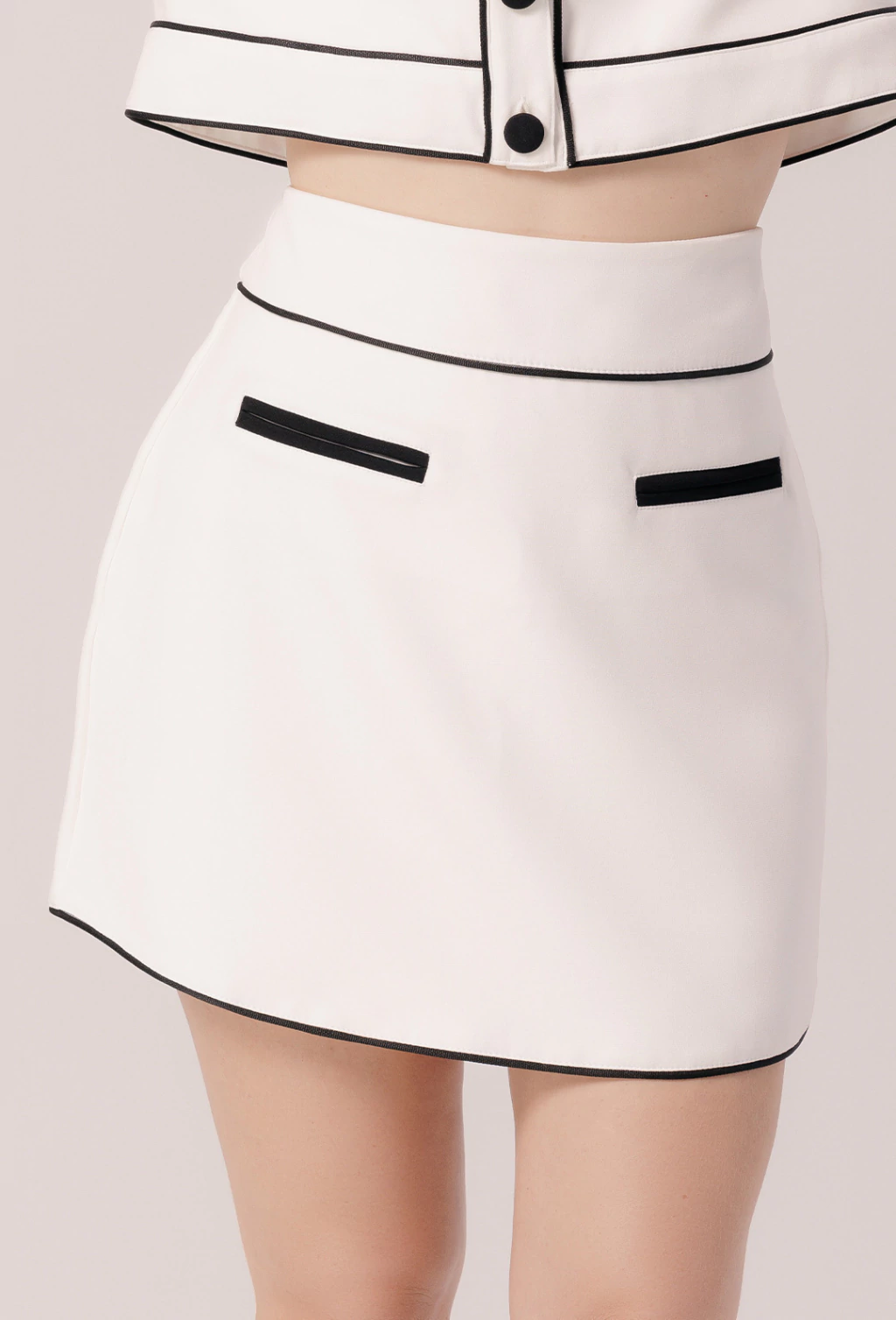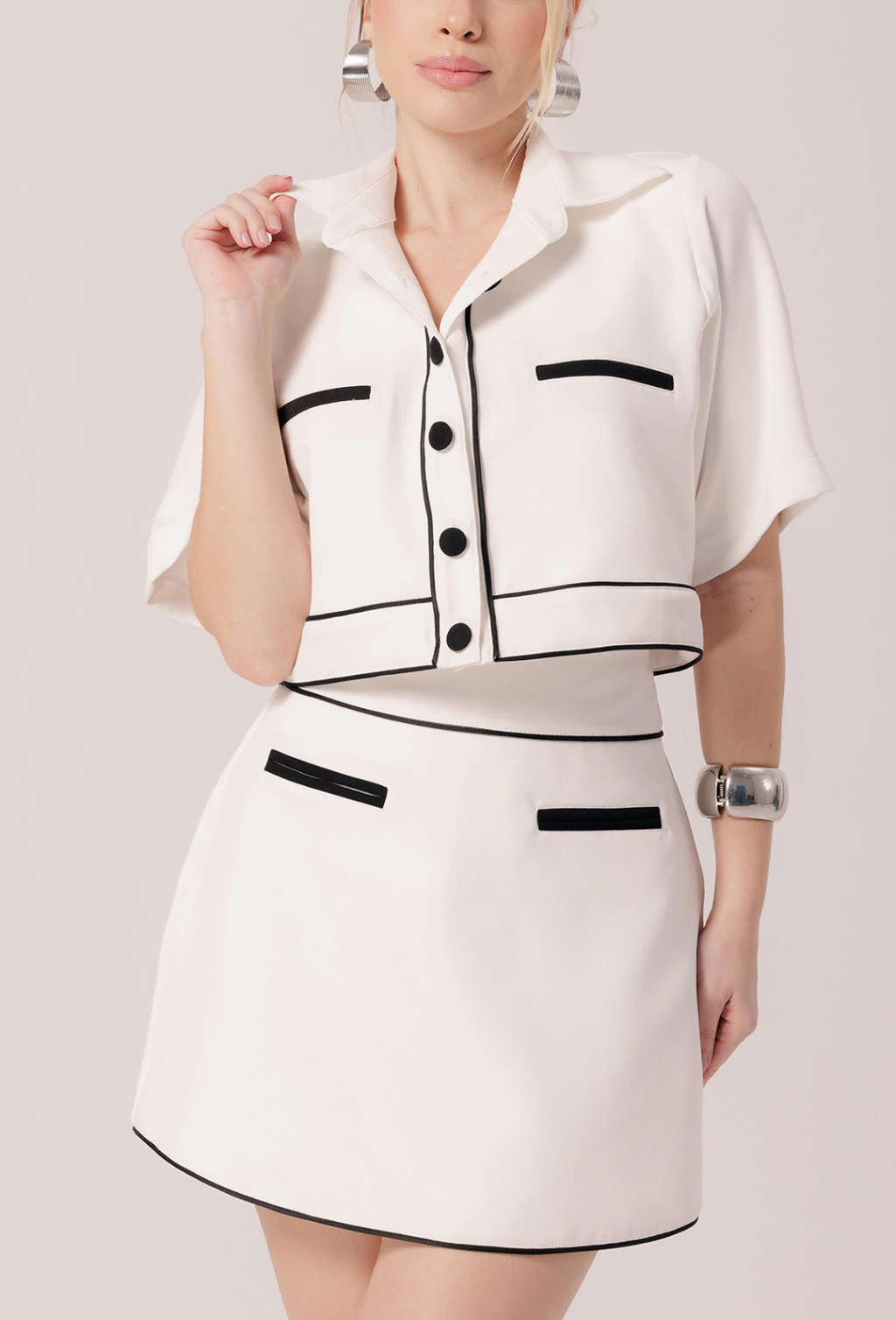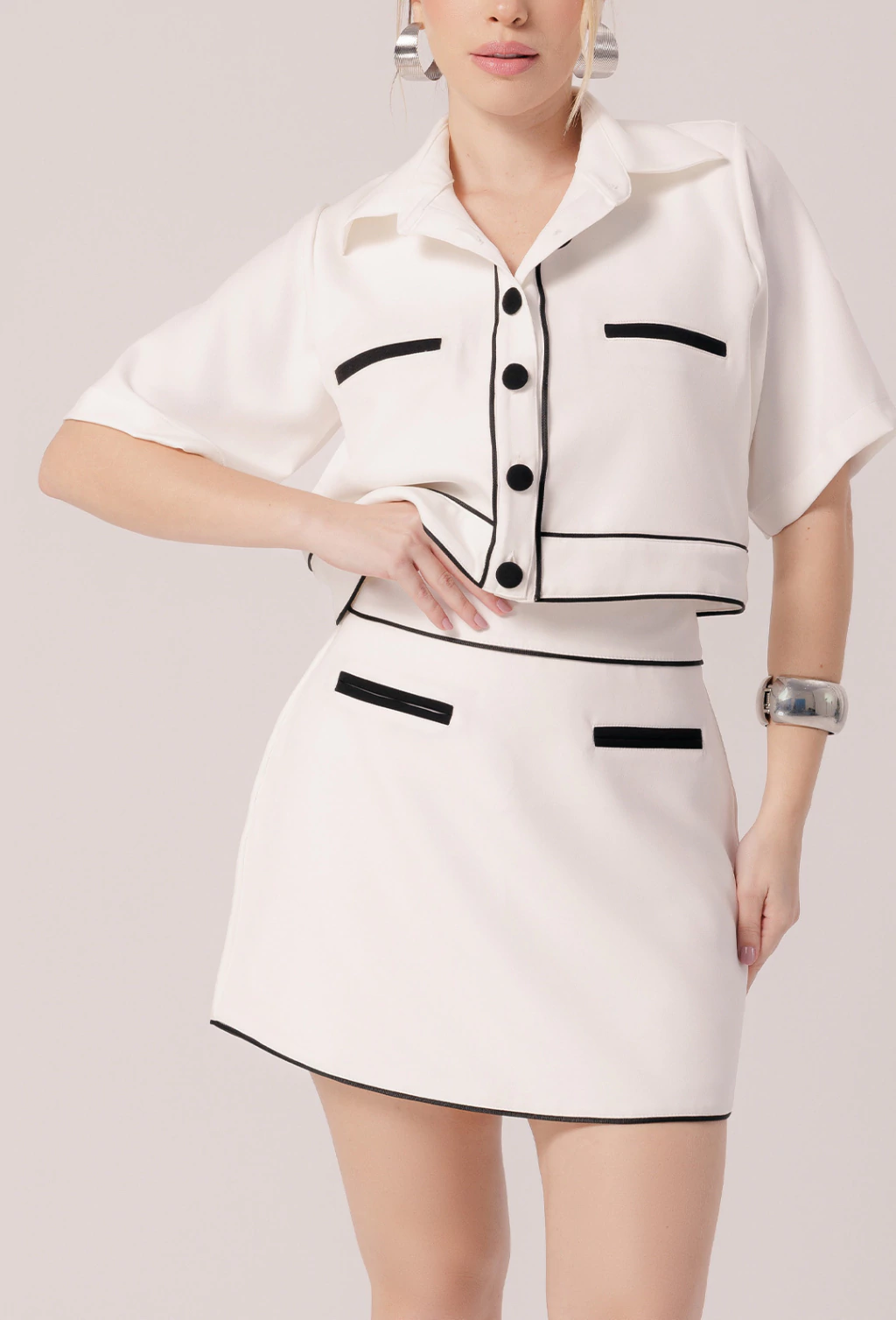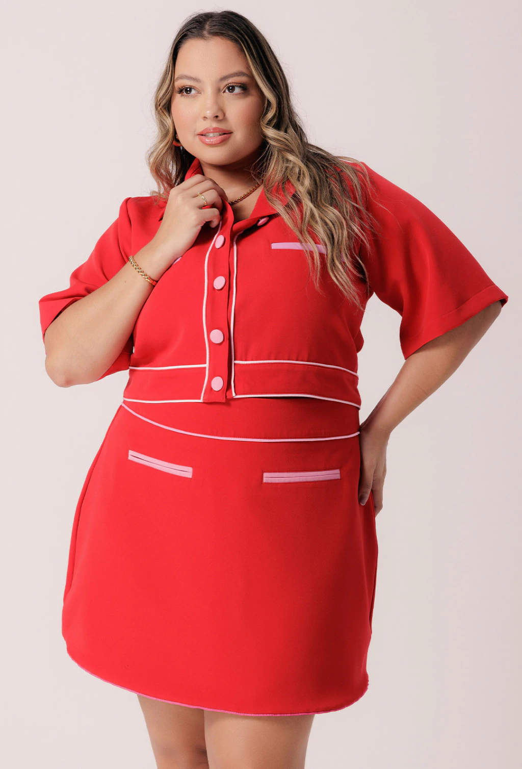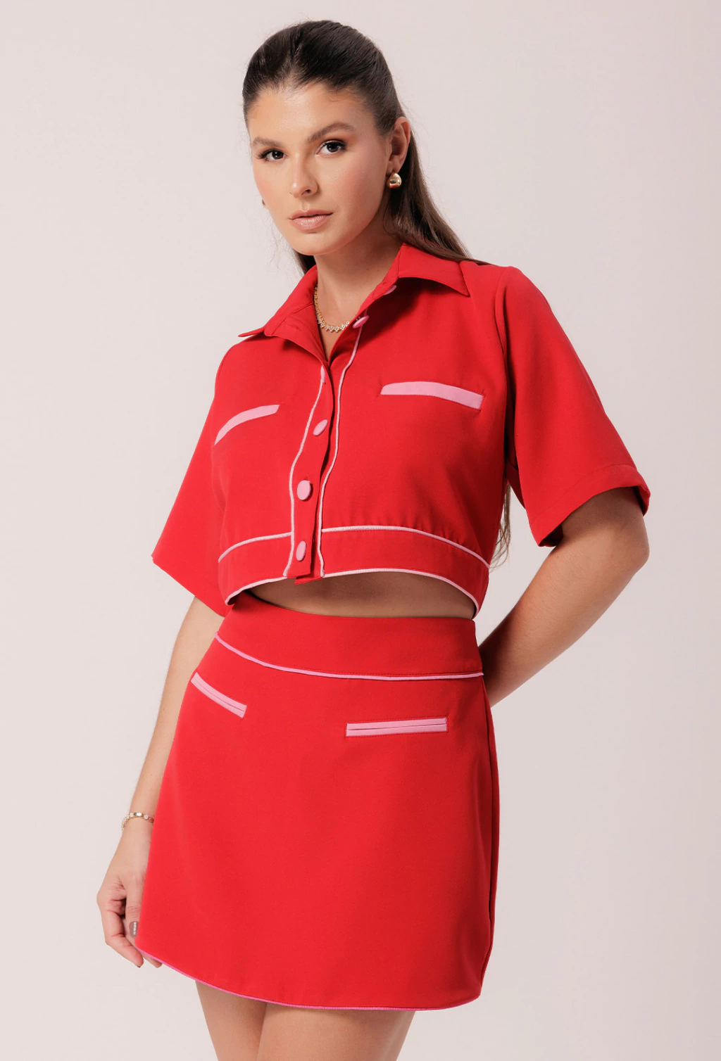 A saia Malu é confeccionada em alfaiataria de alta gramatura, apresenta cós duplo e uma modelagem reta levemente ajustada que exalta as formas corpo, seu fechamento é feito atrás por colchetes para auxiliar no fechamento do zíper e seus bolsos verdugos falsos ajudam a criar o ar de alfaiataria sem comprometer a silhueta da peça. Possui detalhes de acabamento na barra, cós e bolsos que criam contraste com a cor da peça e dão um aspecto descolado para o minimalismo sofisticado da peça, um item com ar moderno e interessante que pode ser usado em diversas ocasiões!