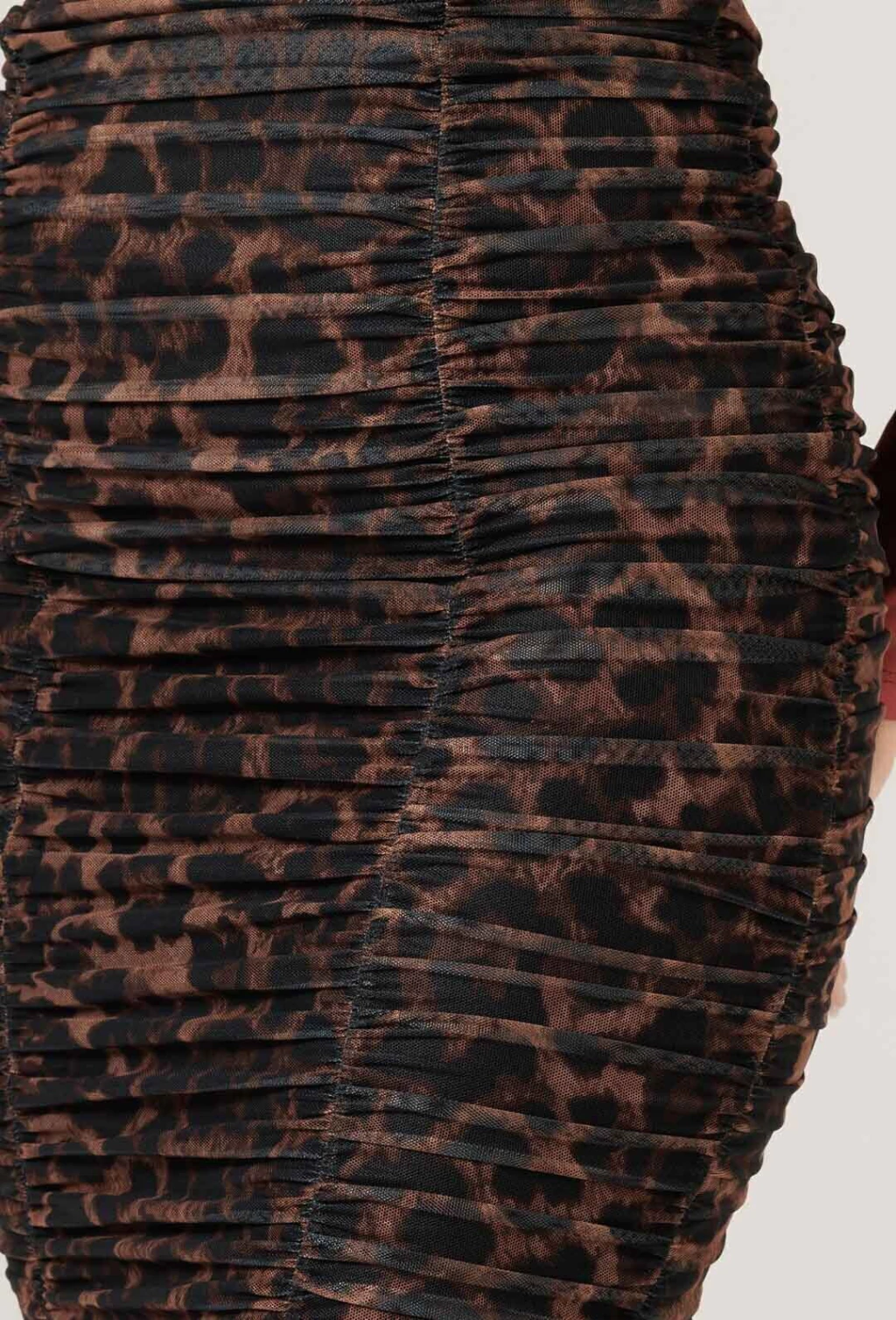 CARACTERISTICAS: Saia midi drapeada em tule estampado de animal print