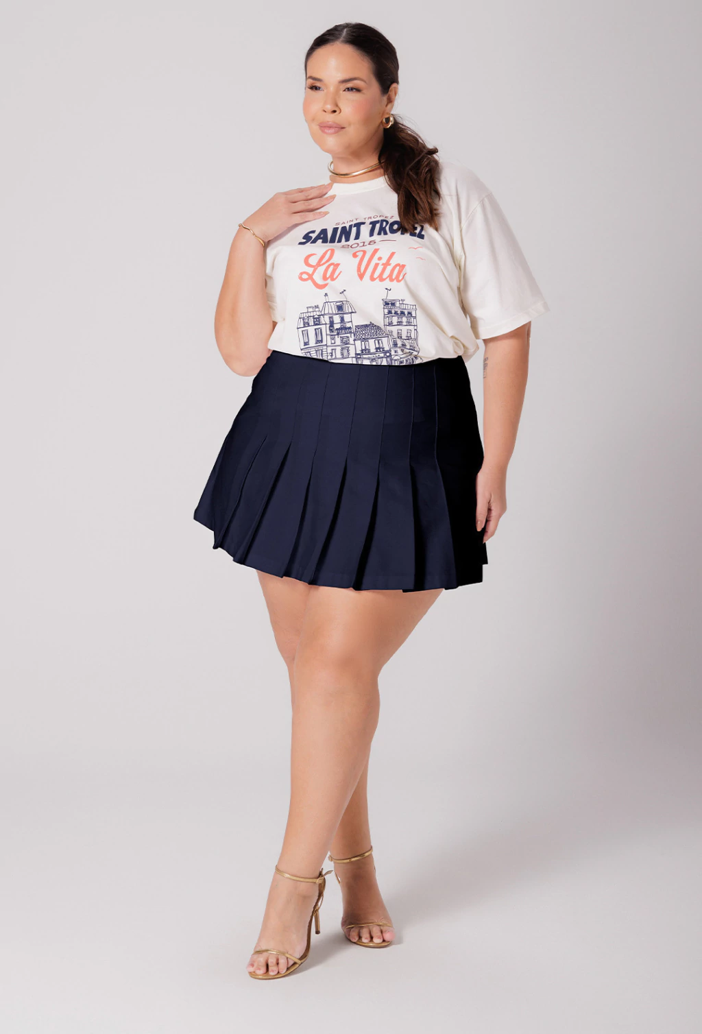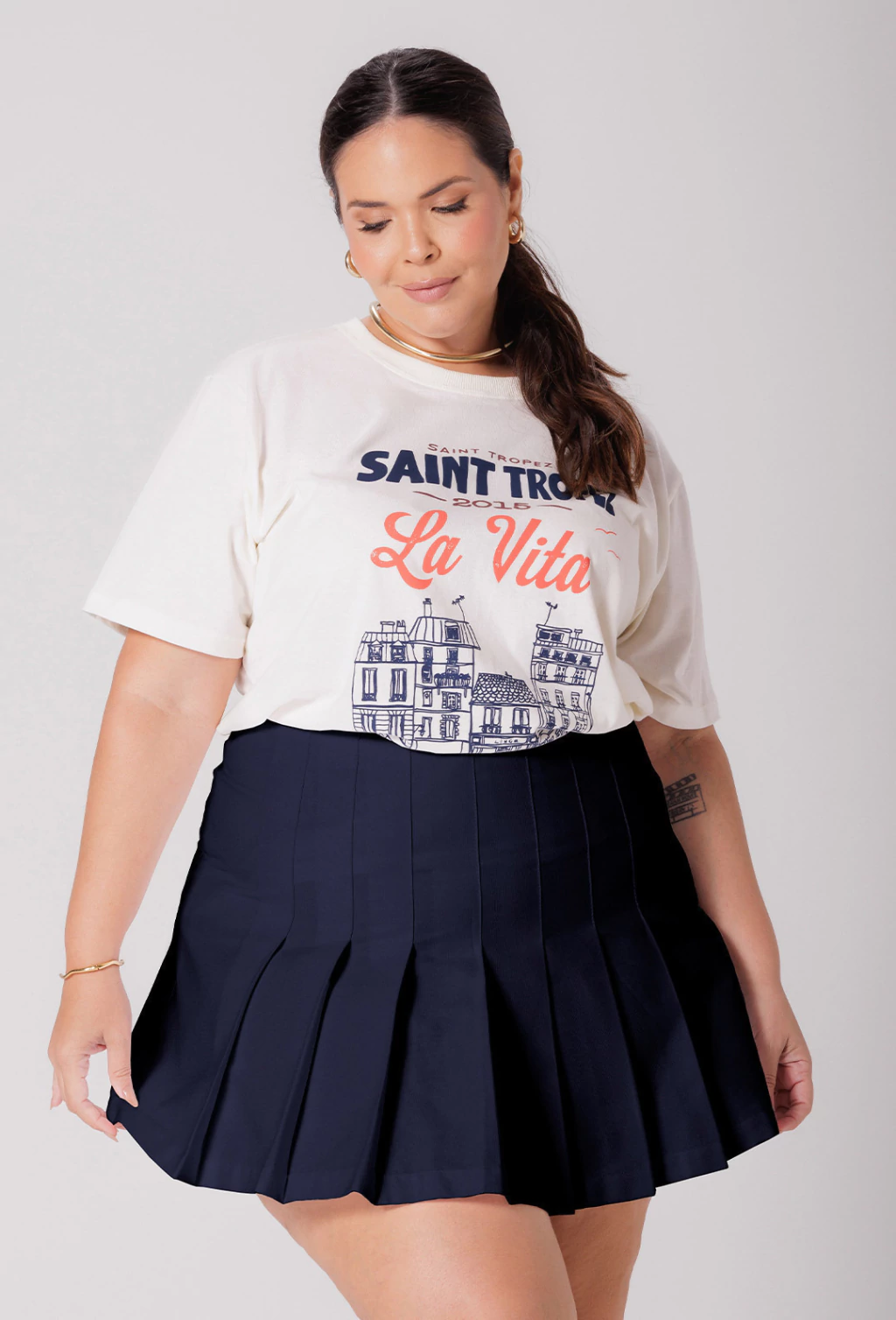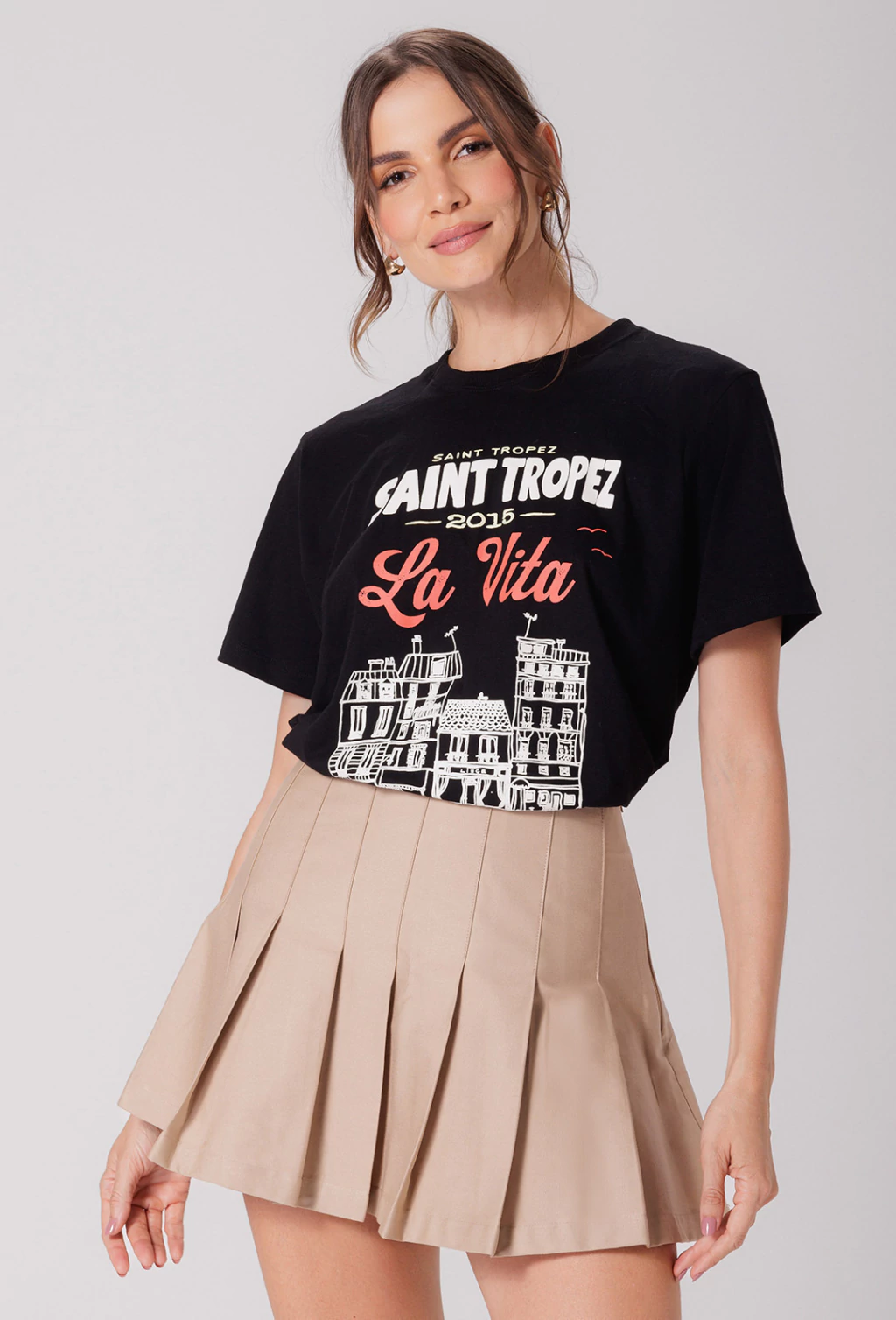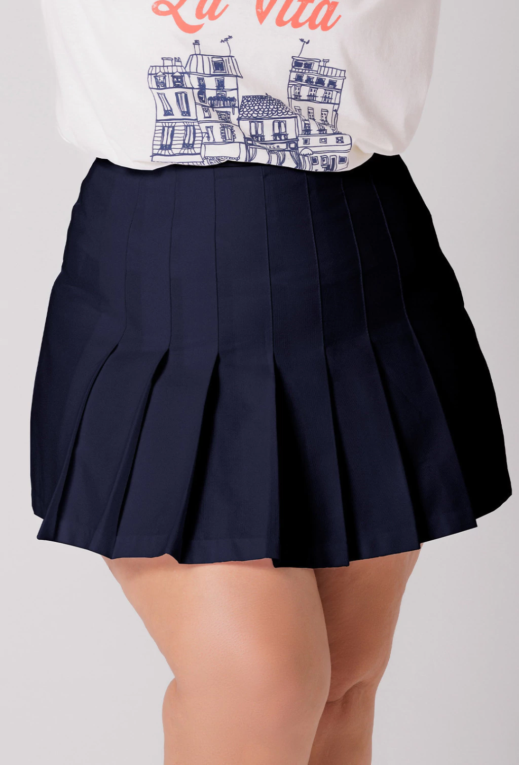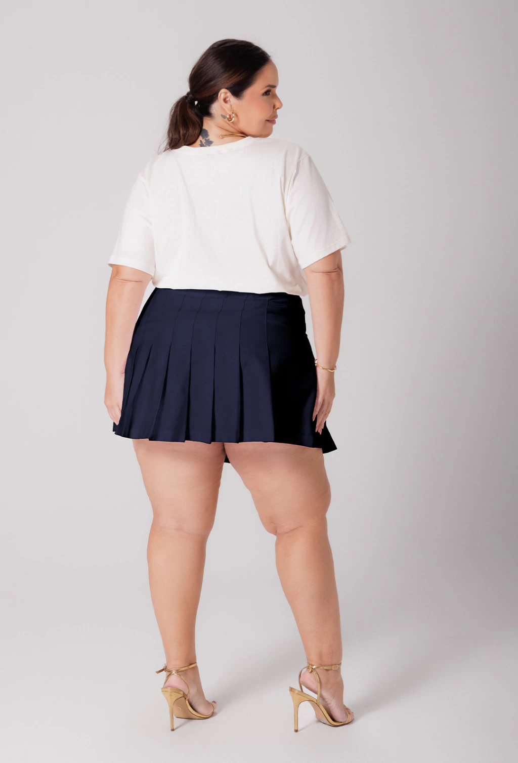 Confeccionado em alfaiataria de alta gramatura, a saia Mila é uma peça bem estruturada que oferece um lindo caimento, Possui um toque bem moderno por ser uma saia curtinha que juntamente com detalhe de pregas confere movimento ao seu visual. É a escolha ideal para quem busca uma sofisticação descolada em cada passo. Adicione um toque de glamour ao seu guarda-roupa com esta peça versátil e atemporal com poder de transformar as composições mais simples em looks descolados e chiques.