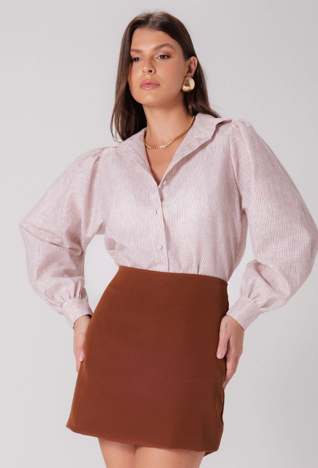Confeccionado em alfaiataria de alta gramatura, a saia Tetê é a nossa aposta sofisticada para você arrasar em looks super fashionistas e cheios de tendências! A saia possui modelagem reta com a barra levemente arredondada, com fechamento em zíper nas costas e forro embutido no mesmo tecido estruturado. Aquela saia básica que todo mundo precisa ter no guarda-roupa!