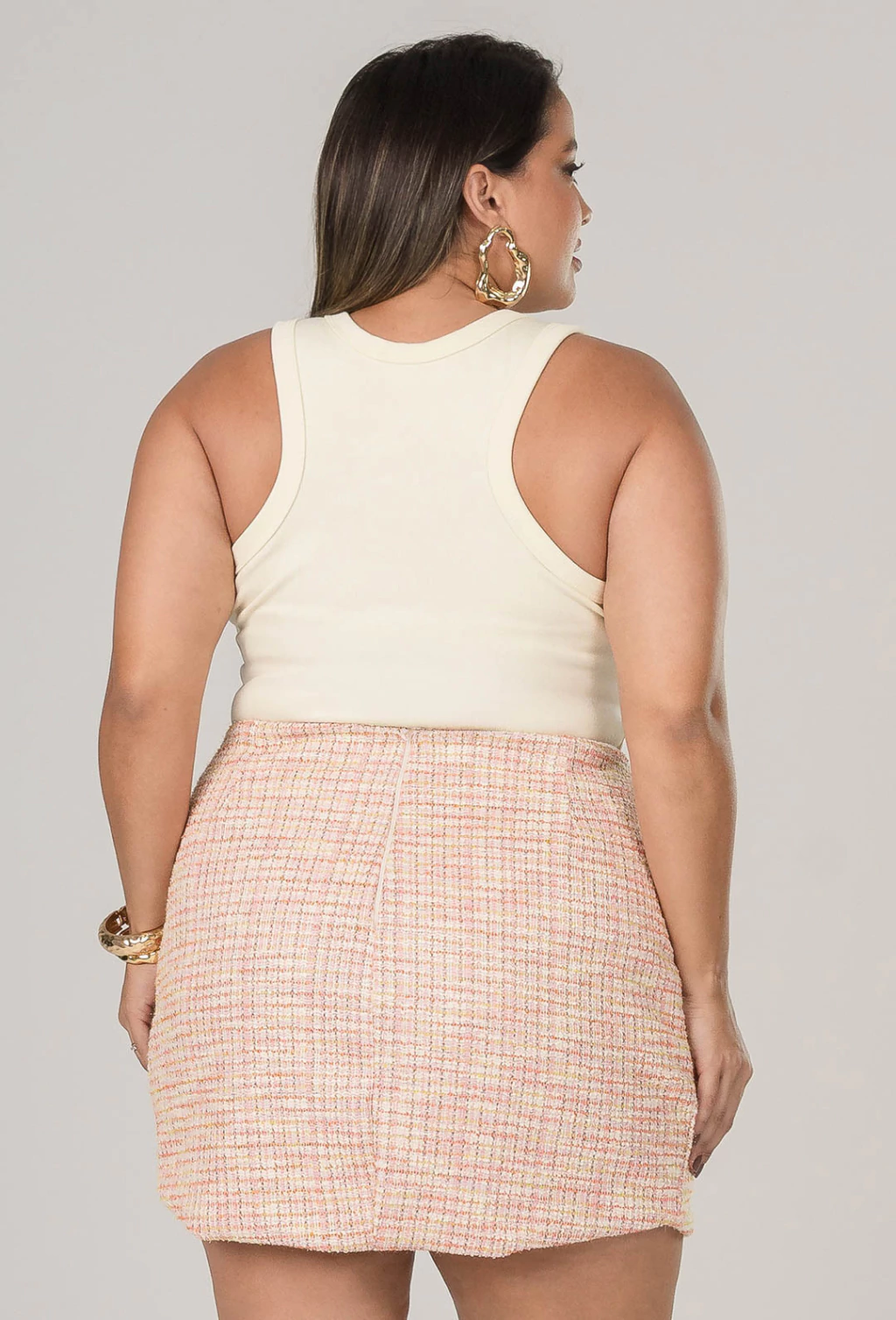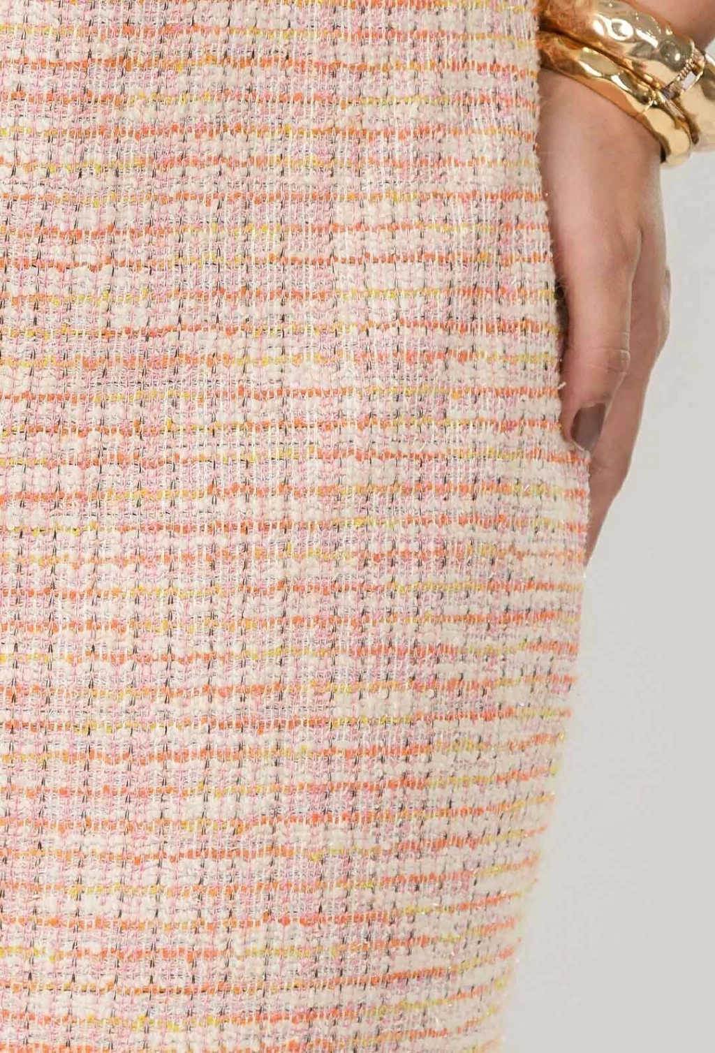 Clássica com um toque contemporâneo, a saia curta reta em tweed é a peça ideal para looks sofisticados e femininos. Com modelagem reta e estrutura elegante, ela é confeccionada em tweed encorpado e confortável, apresentando uma delicada combinação de tonalidades de rosa que trazem charme e suavidade à produção. O acabamento refinado e o tecido texturizado elevam a peça, que pode ser usada tanto em composições mais formais quanto em produções modernas e despojadas.