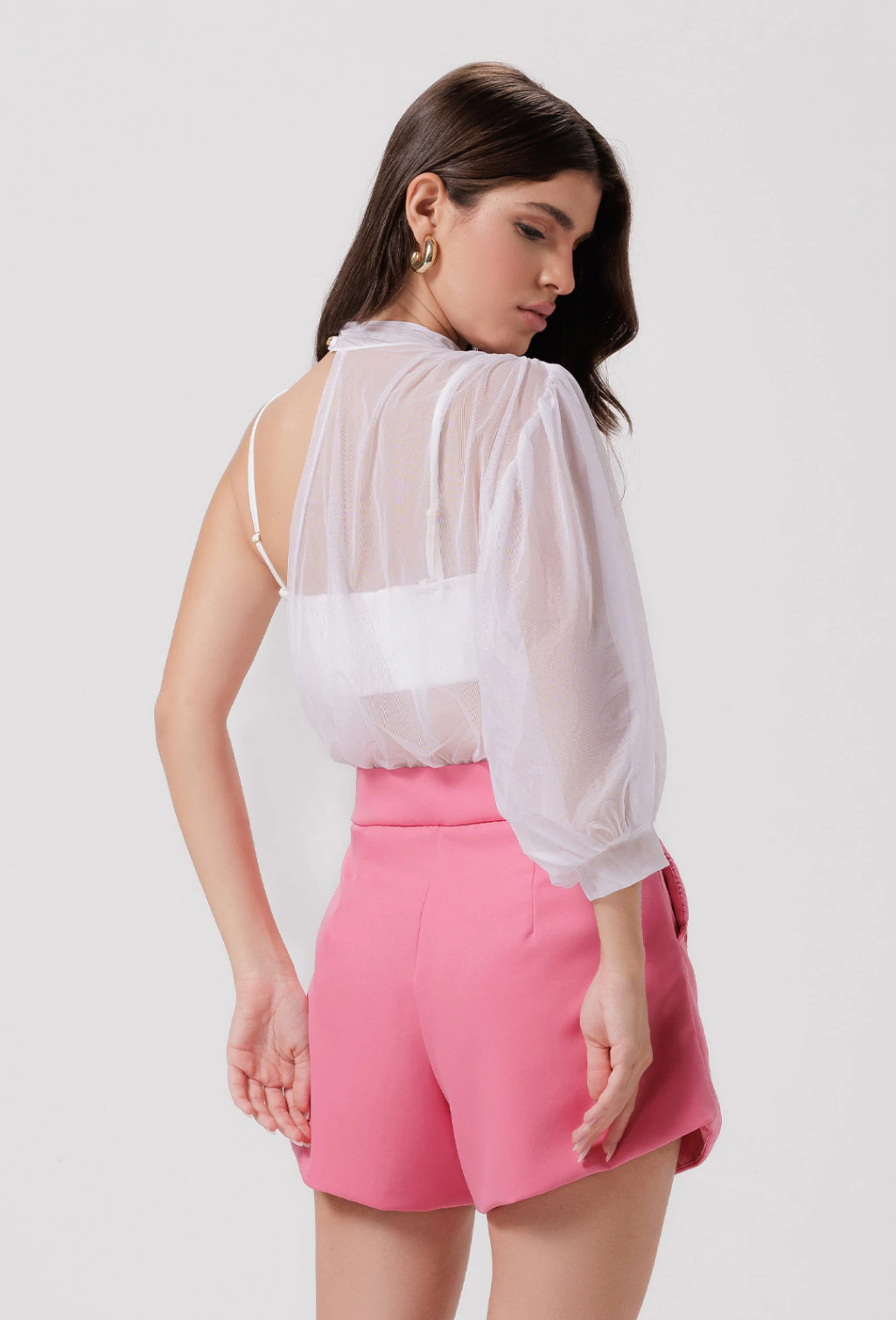 Confeccionado em alfaiataria de alta gramatura, o short Danuze traz uma proposta jovial e sofisticada. Possui bolsos laterais na frente com abas de bolso com aplicação de botões e bolsos que aparecem na barra, tornando o look fashionista com informações atuais de moda. Possui zíper frontal com botão para fechamento e costas lisas.
