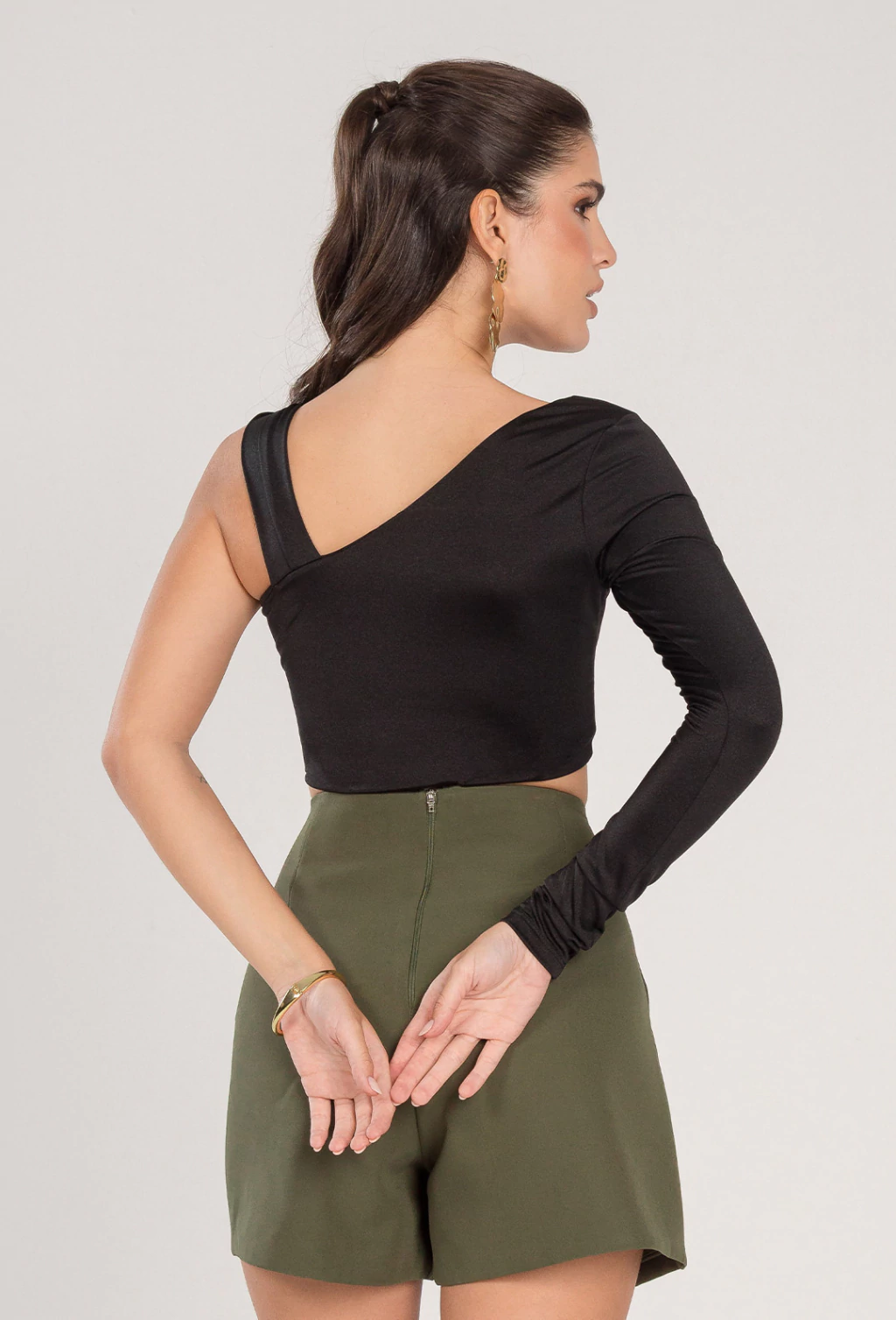 Elegante e moderno, este short em alfaiataria de alta gramatura é a escolha ideal para quem busca sofisticação com conforto. O short Elie possui sobreposição que simula uma saia, o modelo traz um toque fashion ao visual, sem abrir mão da praticidade do short. O detalhe em destaque fica por conta da fivela metálica frontal, que adiciona charme e personalidade à peça. Com modelagem de cintura alta, valoriza a silhueta e garante um caimento impecável.