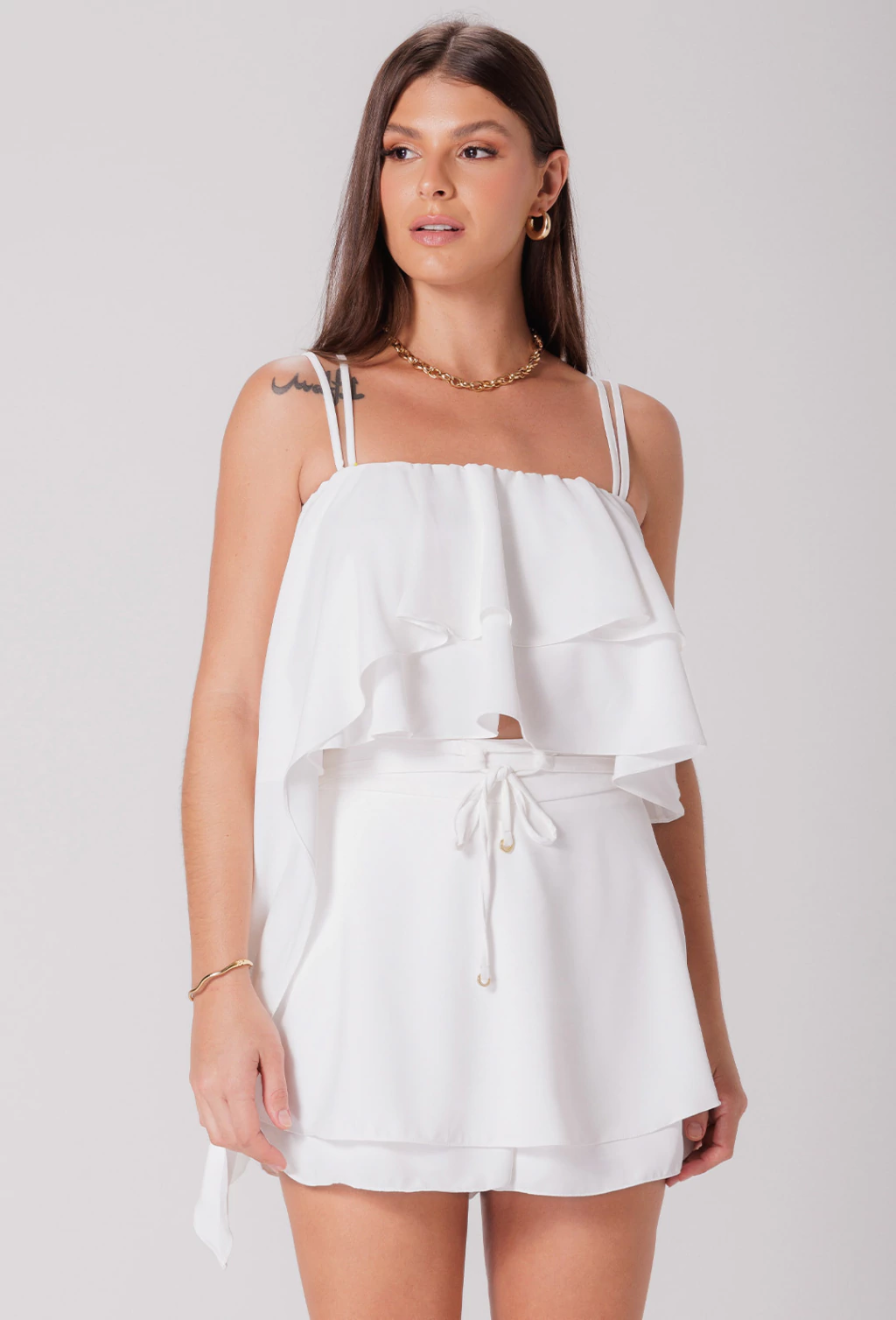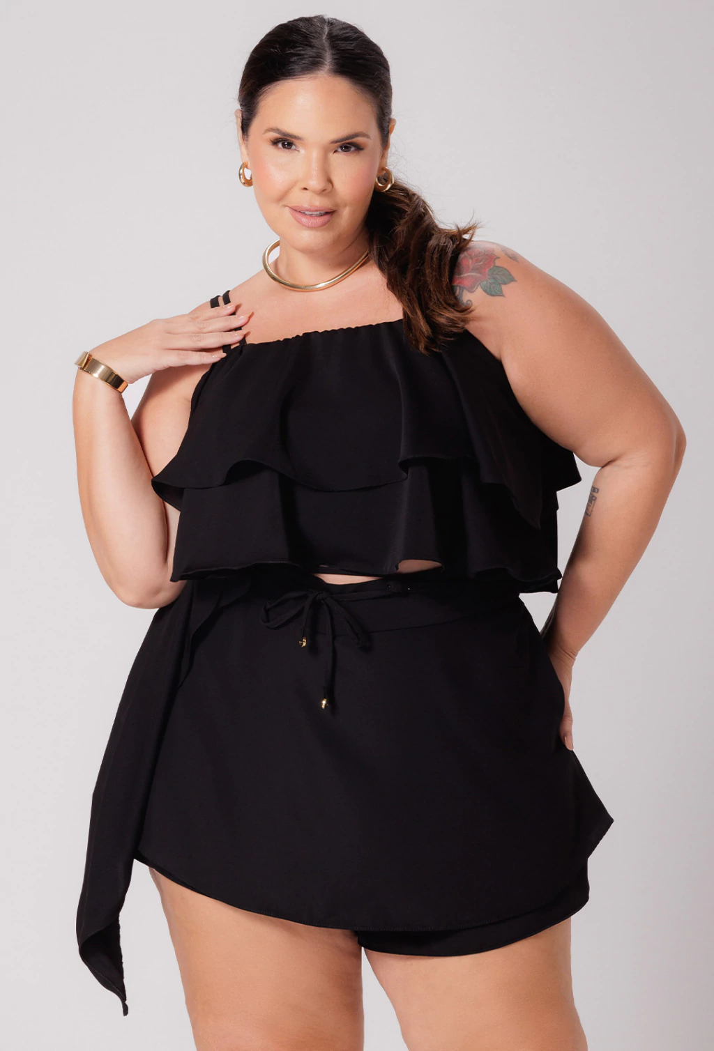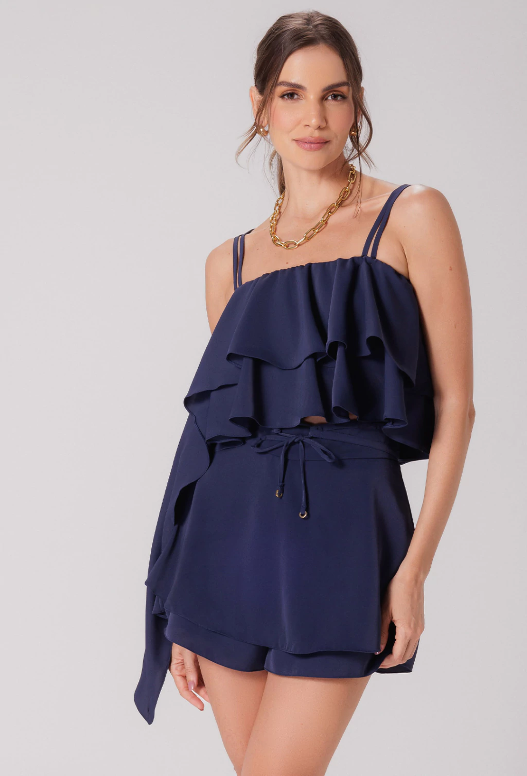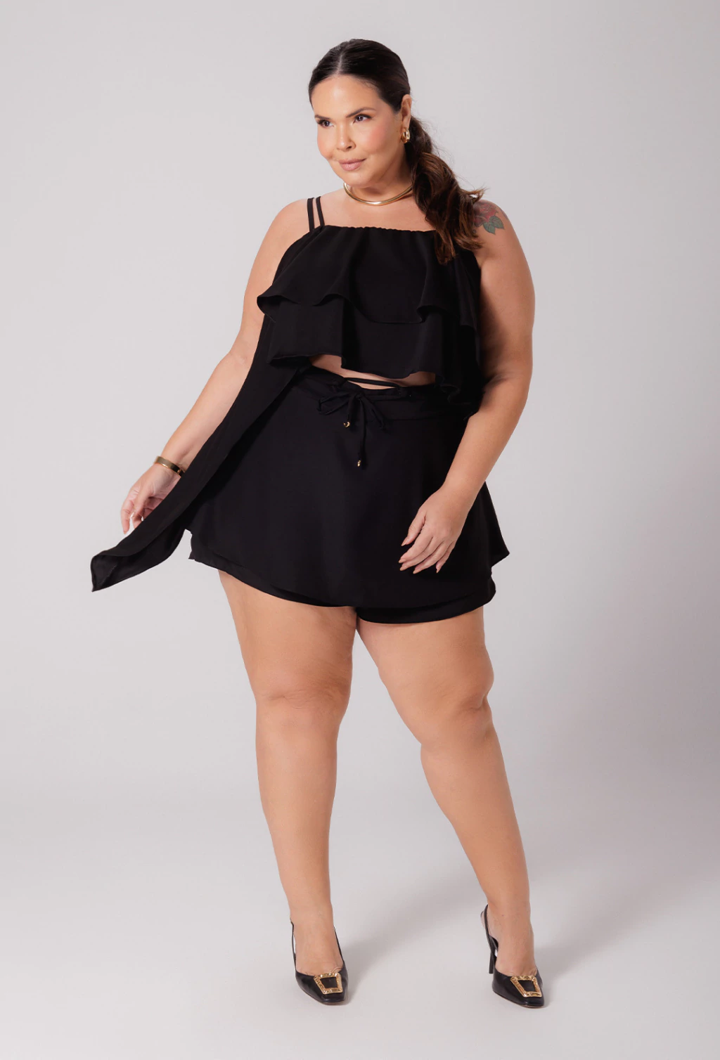Confeccionado em alfaiataria leve, é um Short Saia Joana é uma peça elegante para você usar no dia-a-dia sem deixar a sofisticação de lado. Com uma modelagem soltinha e forro interno, o short saia possui um saiote frontal leve, com uma pala larga e tiras decorativas que adicionam charme ao cós sem perder a delicadeza e a fluidez.