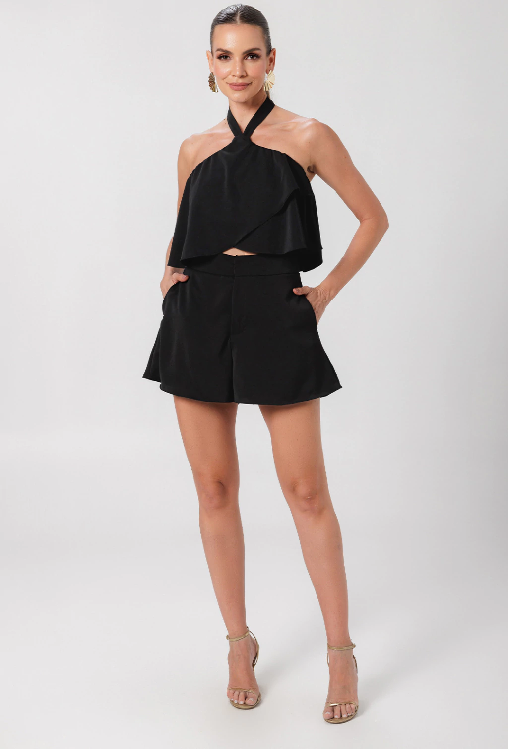 O short Joelma apresenta uma modelagem mais fluida e arejada, sendo ideal para quem busca um look sofisticado e ao mesmo tempo confortável para os dias mais quentes ou ocasiões informais. Sua modelagem "soltinha" no comprimento permite um movimento natural e não restritivo, garantindo conforto sem perder o estilo.