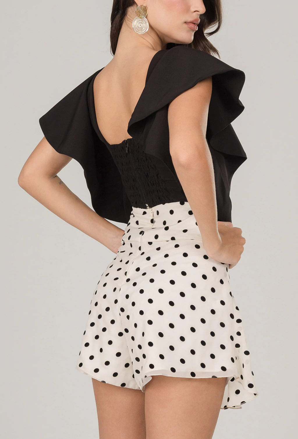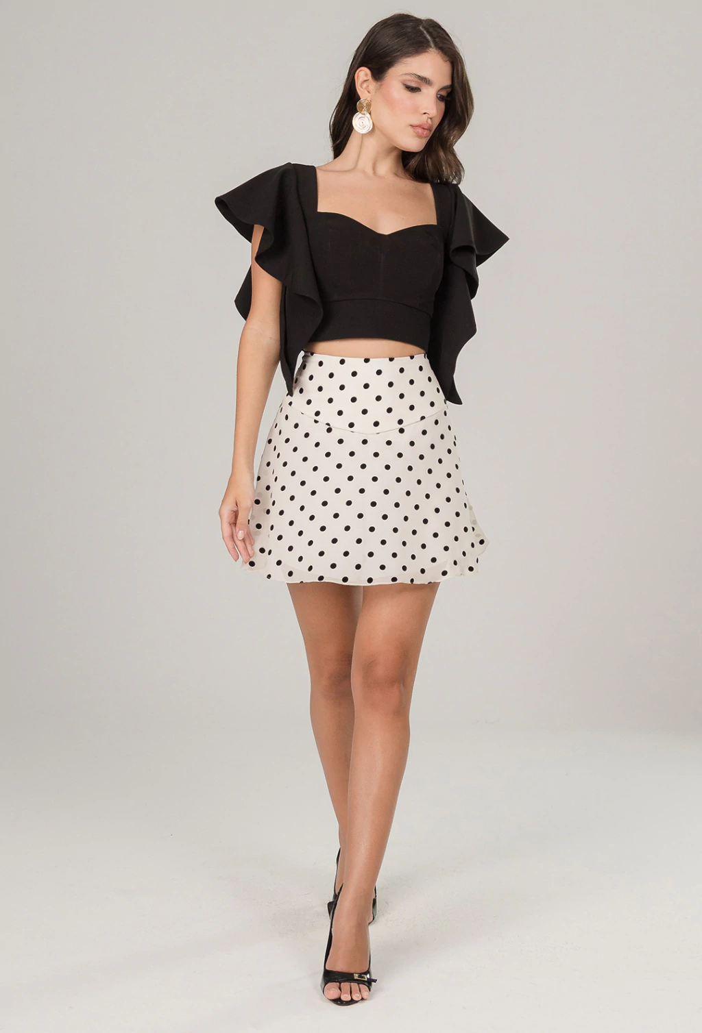 CARACTERISTICAS: Short saia com estampa de poá texturizado