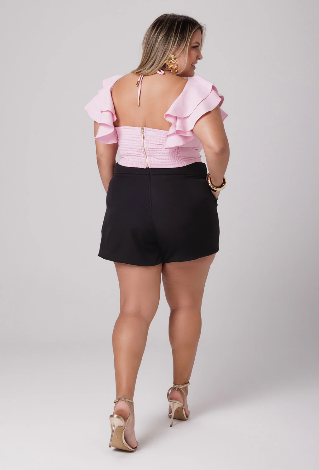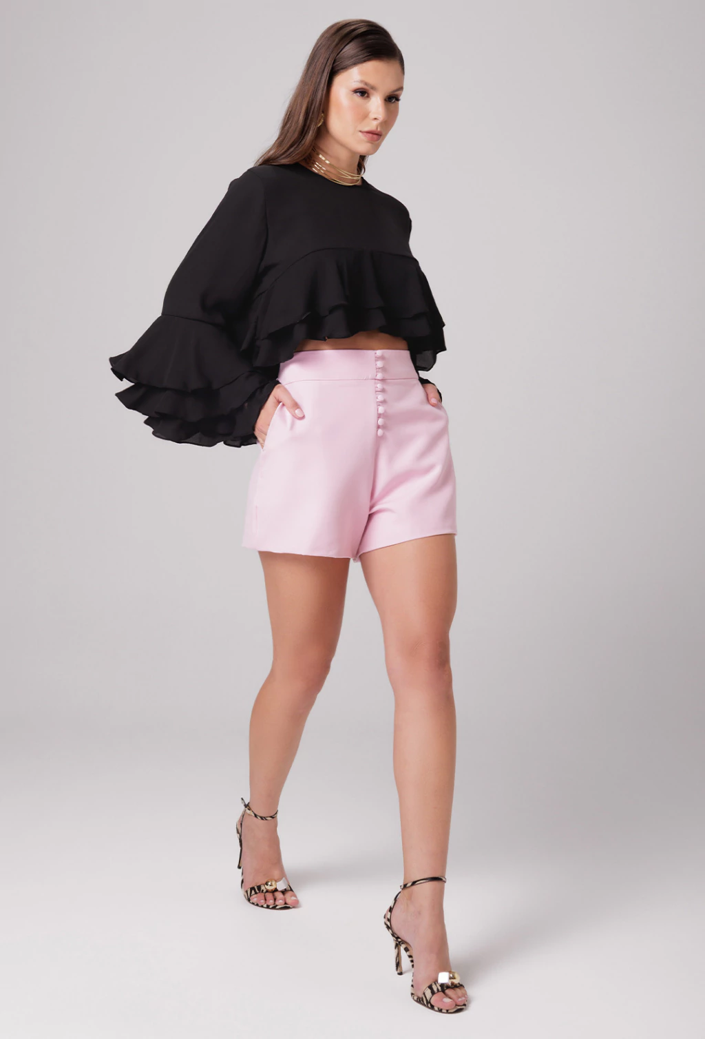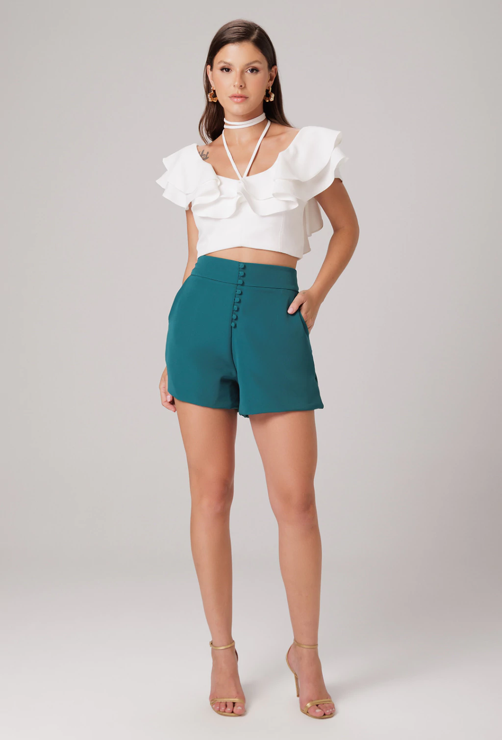 Confeccionado em alfaiataria de alta gramatura o short Selene é uma peça com ótimo caimento. Sua modelagem abraça o corpo, vestindo muito bem e se adequando a vários tipos de corpos. Os botões na frente não são funcionais, mas fazem toda a diferença na peça. Deixando- a mais elaborada e sofisticada