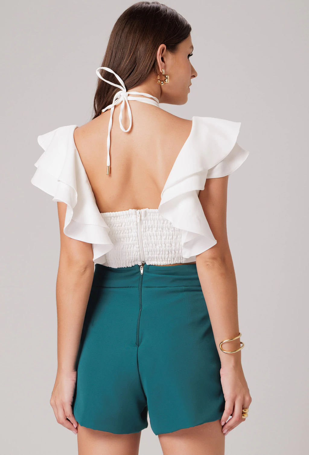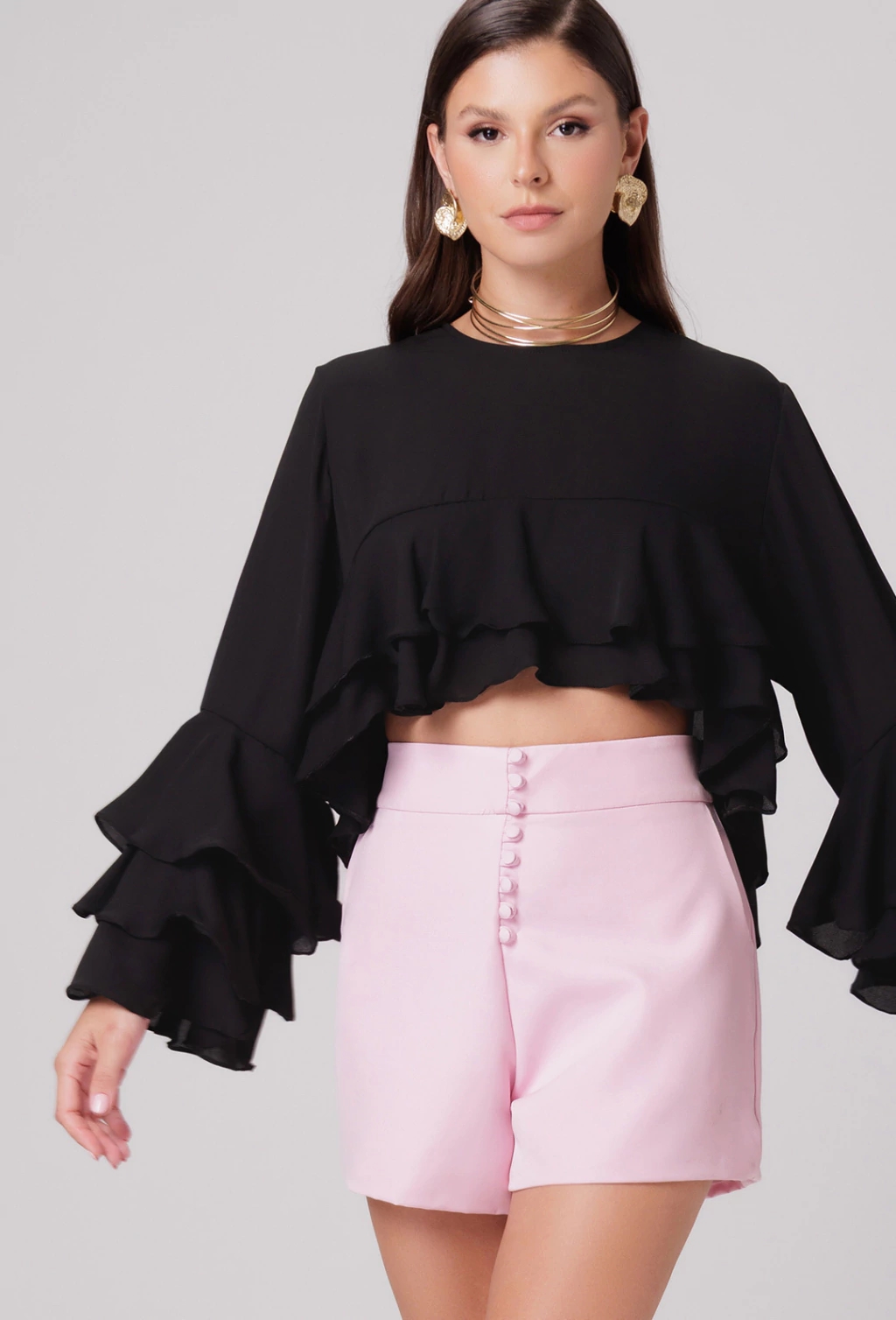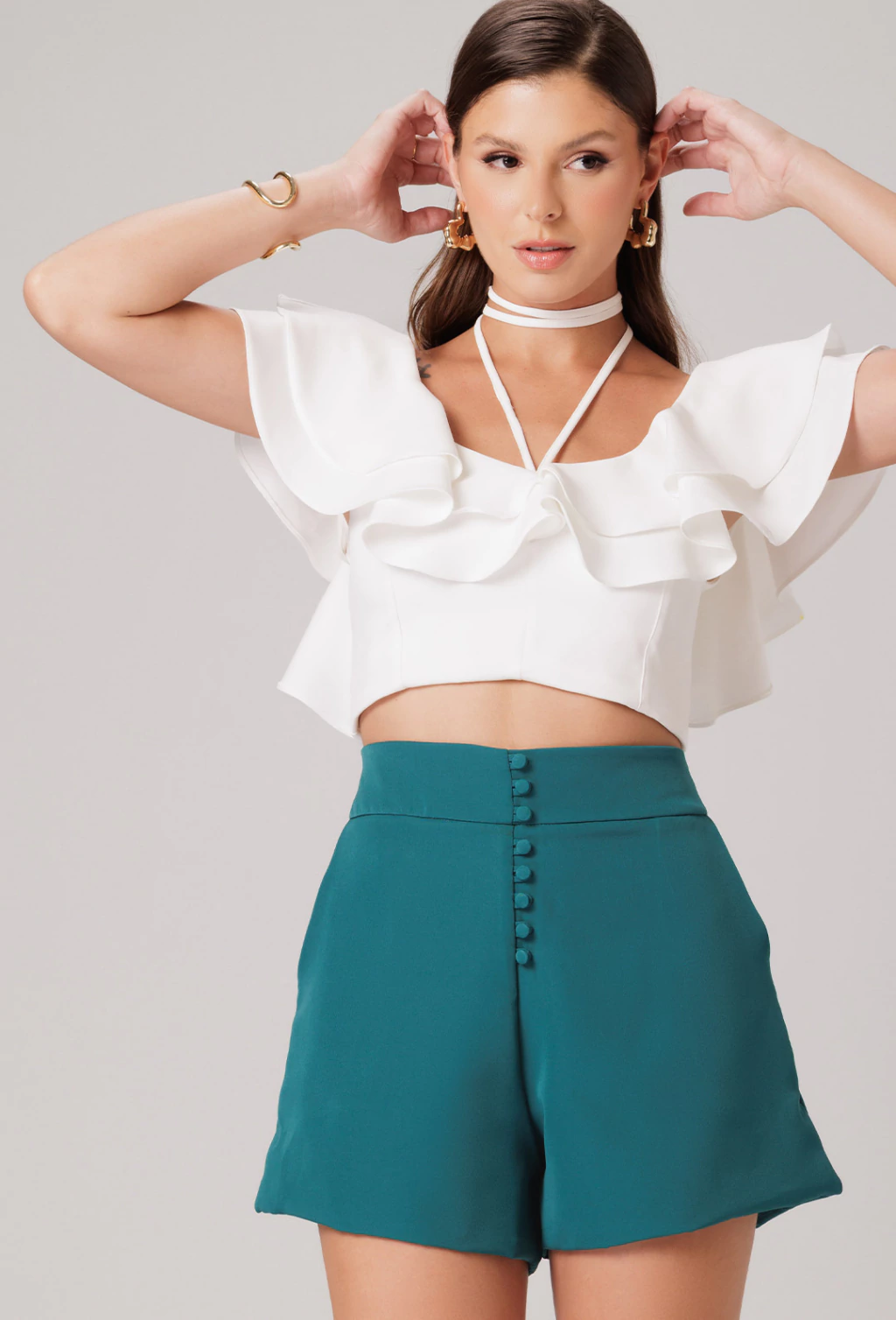 Confeccionado em alfaiataria de alta gramatura o short Selene é uma peça com ótimo caimento. Sua modelagem abraça o corpo, vestindo muito bem e se adequando a vários tipos de corpos. Os botões na frente não são funcionais, mas fazem toda a diferença na peça. Deixando- a mais elaborada e sofisticada