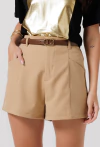 Short confeccionado em alfaiataria de alta gramatura, que garante estrutura, caimento impecável e toque sofisticado. Possui dois bolsos funcionais, unindo praticidade e estilo. O destaque fica por conta da aplicação de esferas e strass na parte frontal, que adiciona brilho e um toque glamouroso à peça. Ideal para composições modernas e elegantes, com um toque de exclusividade.