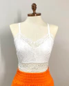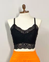 Confeccionado em renda, o top Luna combina um busto e o cós todo em renda e tule deixando o visual desenhando da renda na parte do busto trazendo delicadeza. O tule na parte do decote é um charme a mais na peça.