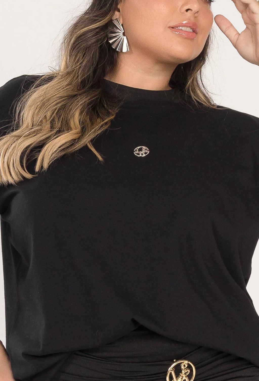 T-shirt de modelagem oversized, confeccionada em malha de algodão premium, a t-shirt Alexia oferece conforto, caimento solto e estilo urbano contemporâneo. A peça se destaca pela aplicação de uma medalha personalizada fixada manualmente na região do peito, conferindo um toque exclusivo e sofisticado ao design. A gola é em ribana e deixa a peçça com mais sofisticação. CARACTERISTICAS: T-shirt oversized com aplicação de medalha personalizada