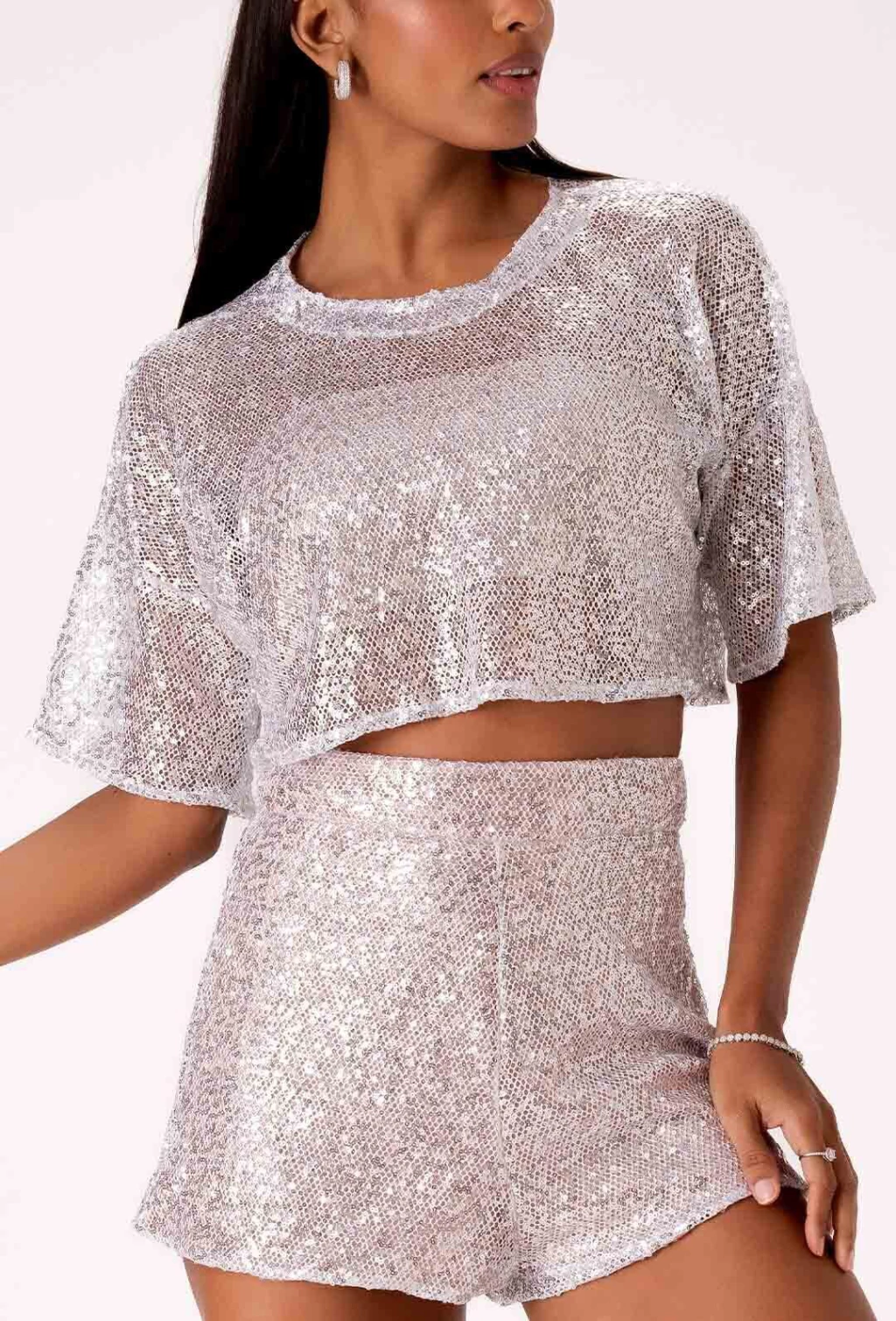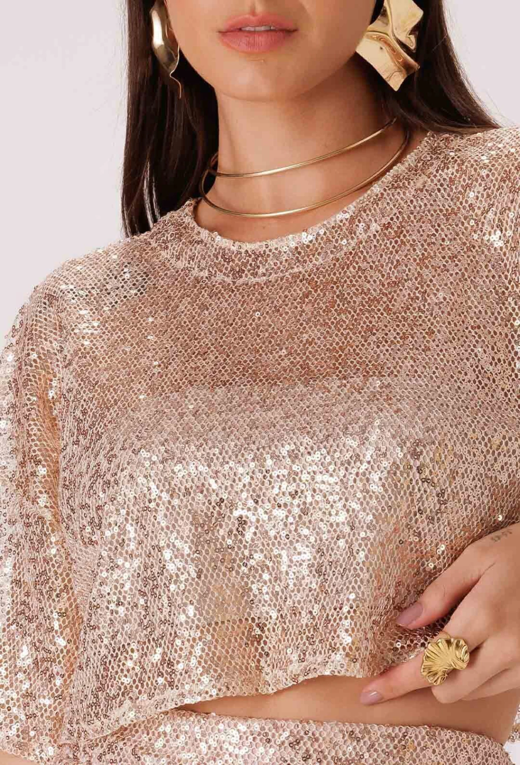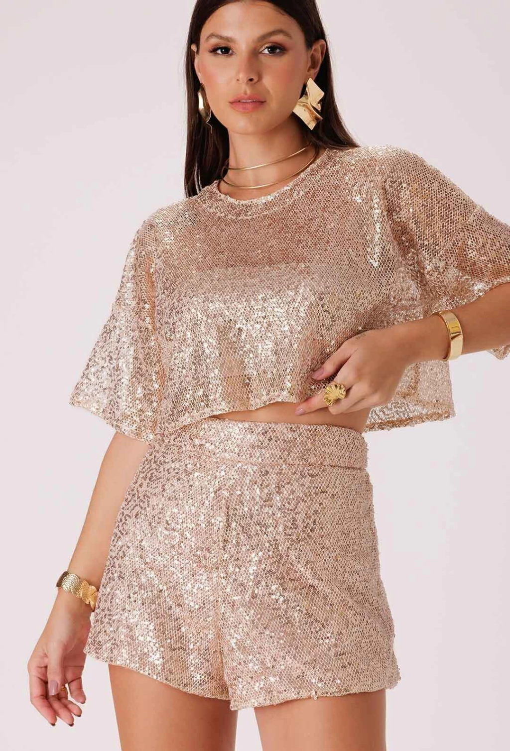 Confeccionada em tela de lurex com paetê, a Cropped Ondina traz uma modelagem despojada repaginada com um material premium, garantindo um look hi-lo, que fica incrível para ser usado nas festividades e até em ocasiões mais despojadas. A peça tem modelagem soltinha no corpo, comprimento cropped e mangas com ombro deslocado. Não possui forro e por isso permite brincar com tops de diferentes modelos e cores.