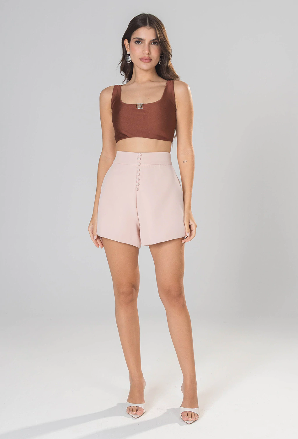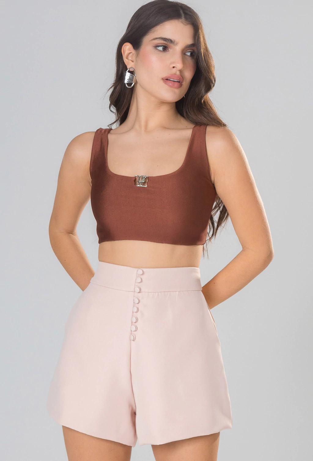 Com decote quadrado super feminino e detalhe de fivela personalizada vno centro do busto, o top Jade valoriza o colo e traz um toque sofisticado à produção. O tecido acetinado confere brilho sutil, sua modelagem é ajustada ao corpo. Ideal para compor looks versáteis desde produções casuais até ocasiões especiais. Perfeito para quem busca uma peça diferenciada.