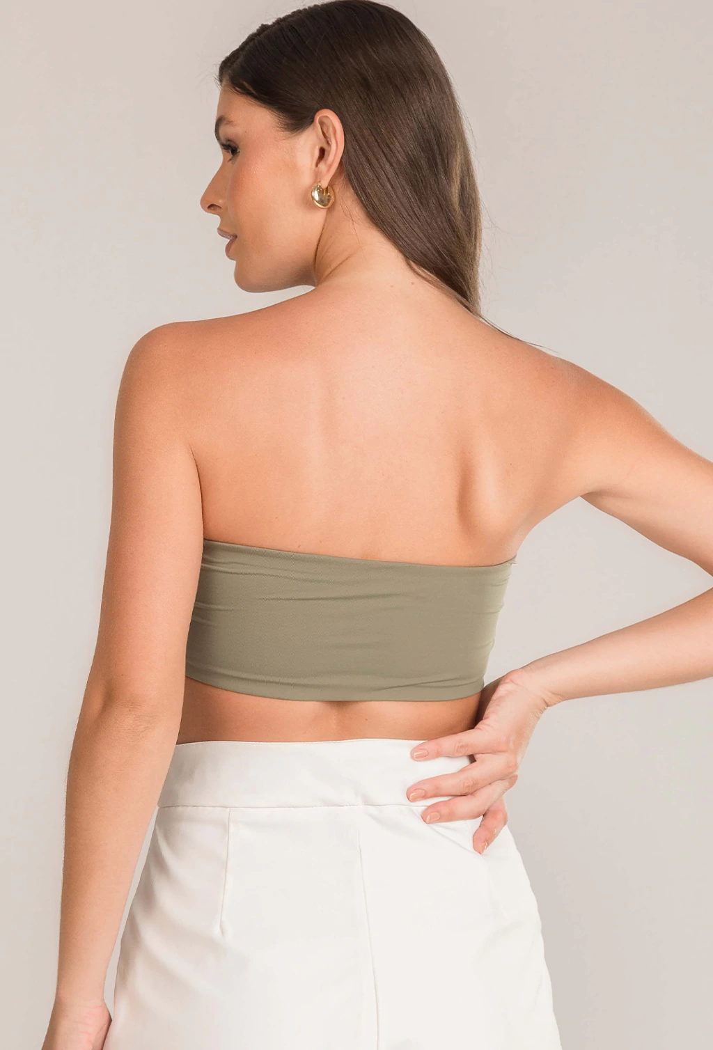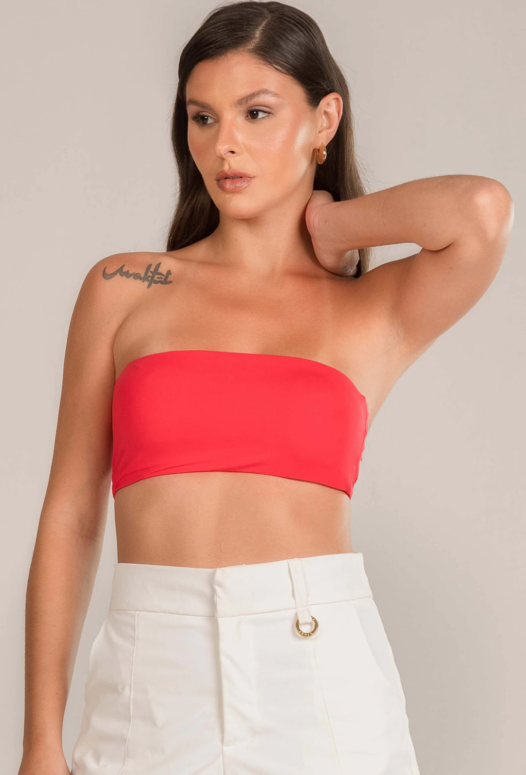 Top faixa confeccionado em malha com leve brilho, que se ajusta perfeitamente ao corpo com conforto e segurança. Com modelagem tomara que caia, esse top oferece um visual moderno, minimalista e cheio de estilo. O design sem alças valoriza os ombros e o colo, sendo ideal para compor looks mais frescos e ousados.