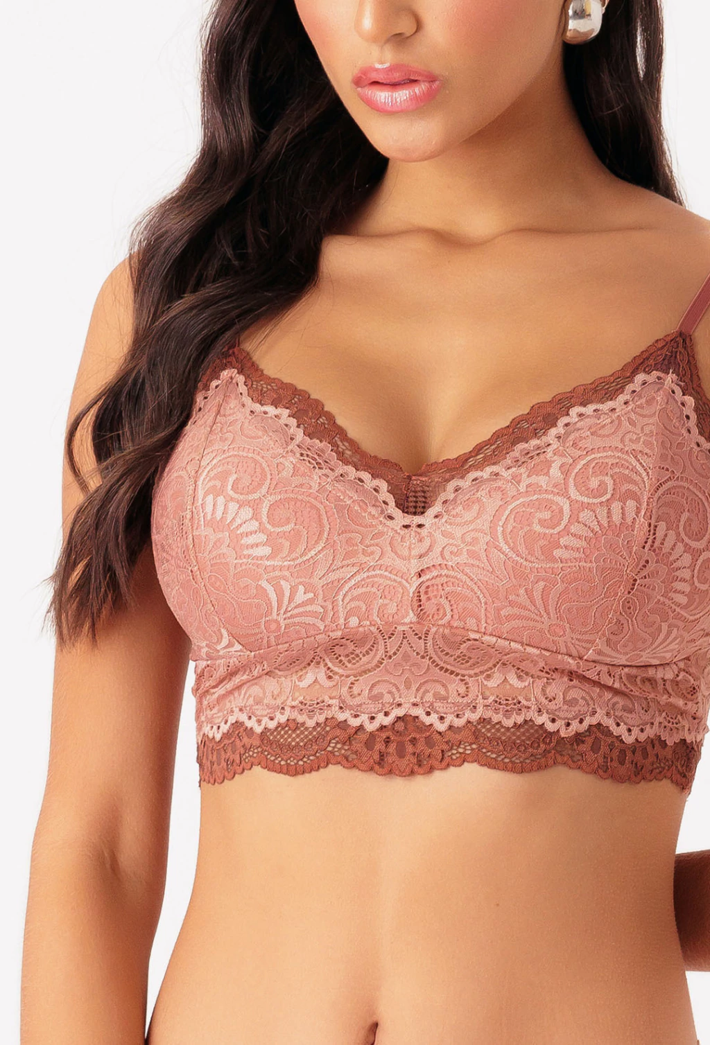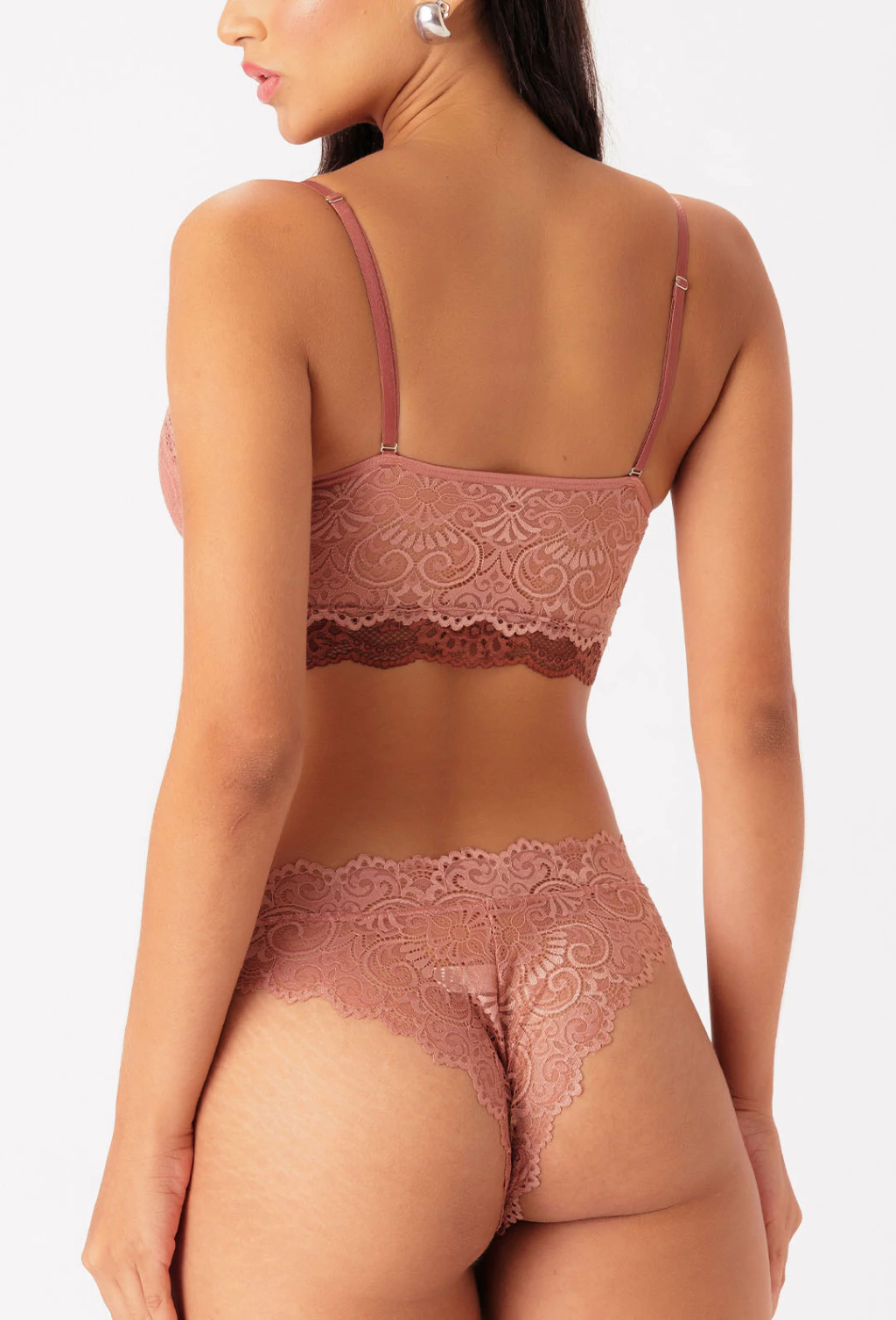 Confeccionado em uma combinação de rendas, o top Tatá é uma peça confortável e super delicada. Ele possui busto em shape triangular, mais cobertinho na lateral e com pala em matame de renda. O busto é forrado em luna, uma microfibra de poliamida leve, e as alças são reguláveis.